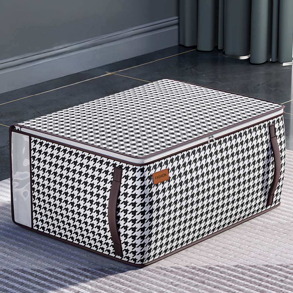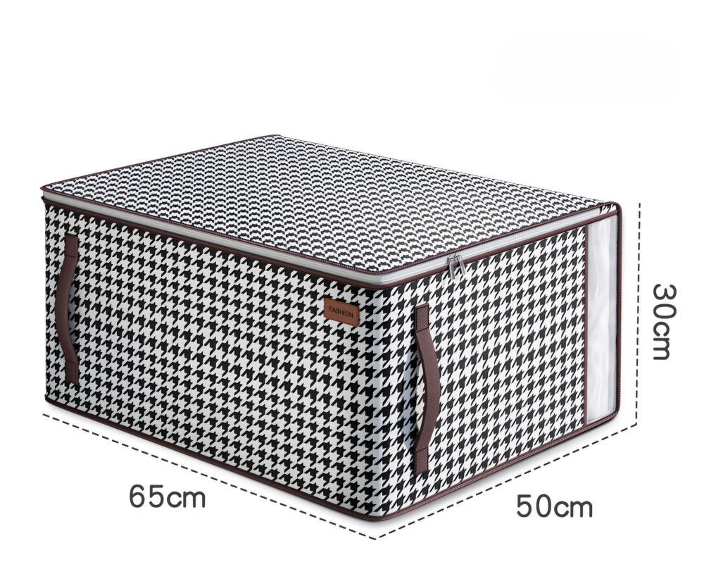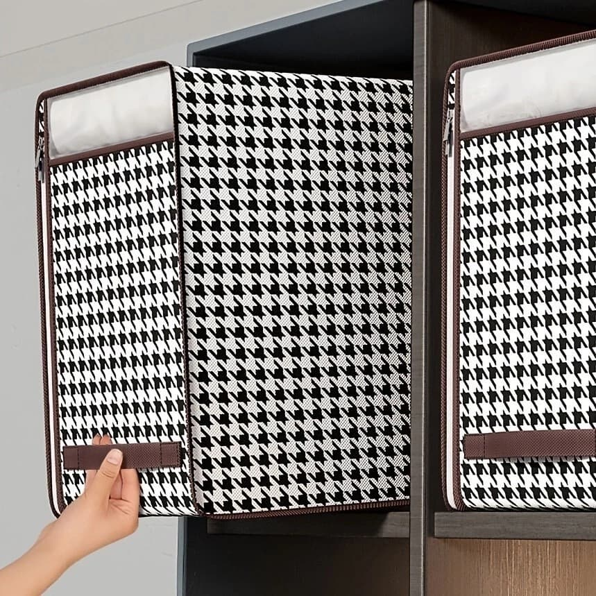(Organizadores de almacenamiento plegables hechos de tela diseñados para guardar ropa, mantas u otros artículos. Son plegables para un fácil almacenamiento cuando no están en uso. Cuentan con cierres de doble sentido para facilitar el acceso y asas reforzadas para transportar objetos. Suelen ser utilizados en armarios, dormitorios, garajes o durante mudanzas). (UT37)