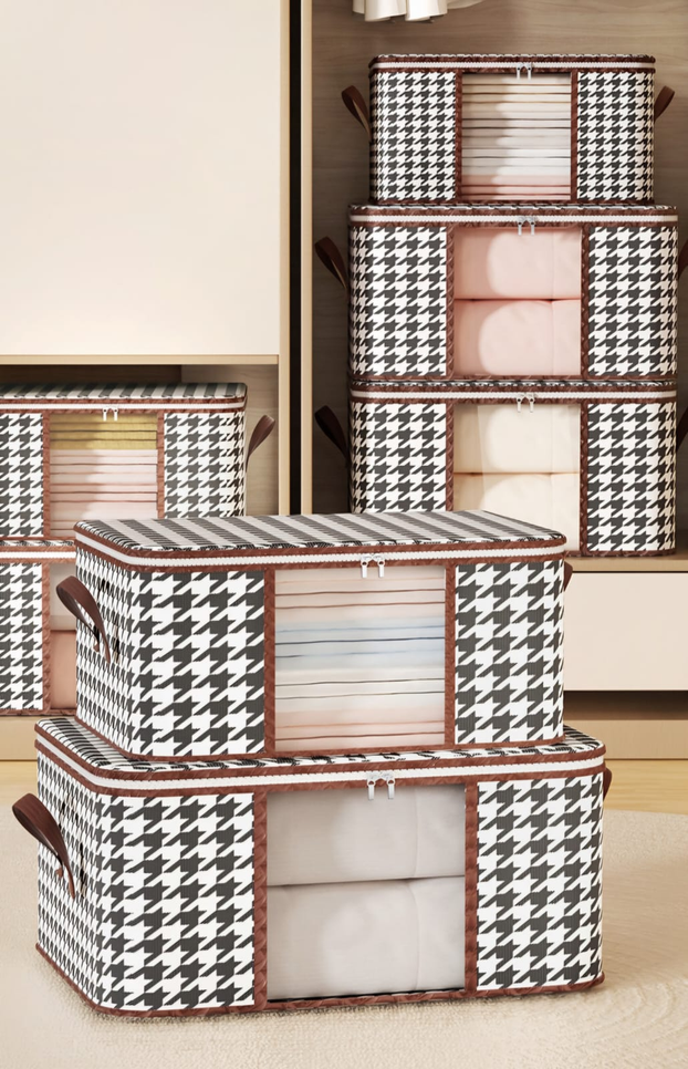 (Caja organizadora con visor, son perfectas para guardar mantas y/o prendas delicadas. Hecho con materiales ecológicos. Este es aprueba de humedad lo que hace que el contenido no se arruine, de fácil limpieza y su tamaño la hace adecuado para espacios reducidos. Tambien es ideal para poder llevarla en tu valija impidiendo que dañe tus prendas). (ut37)