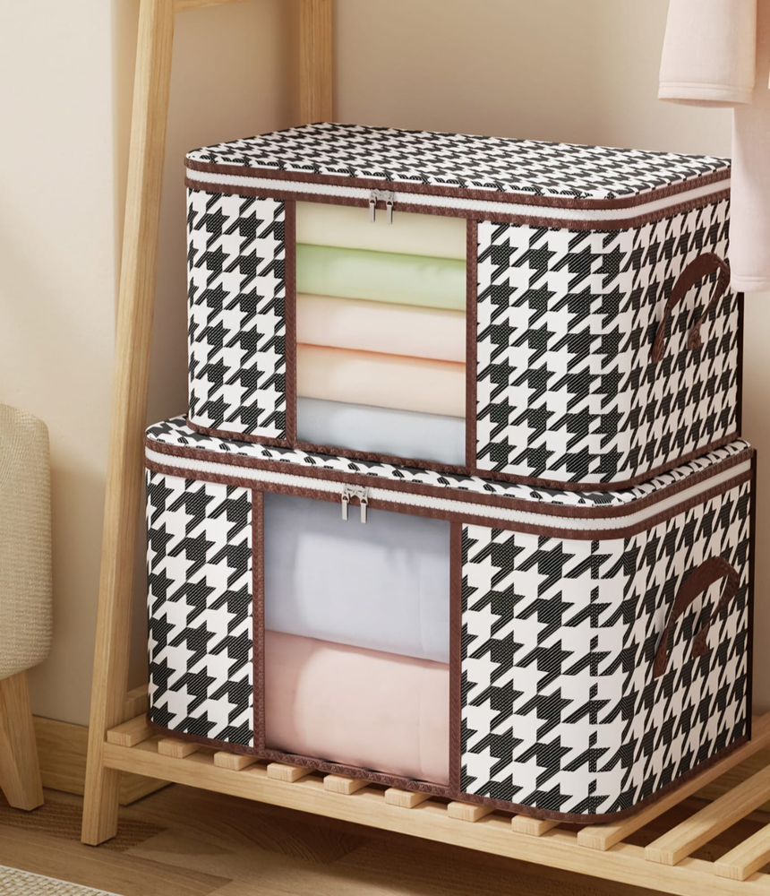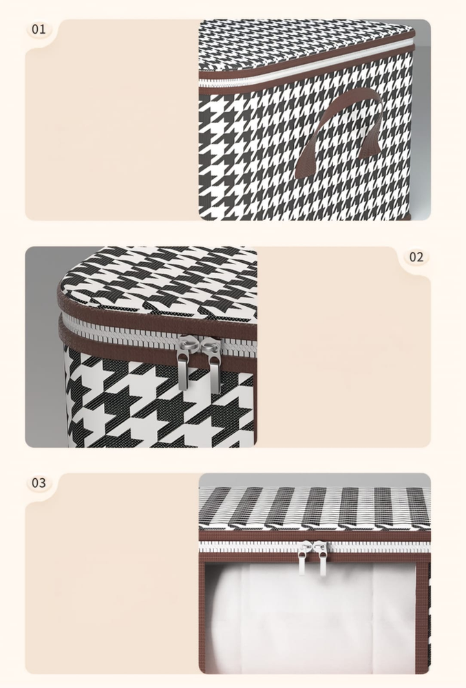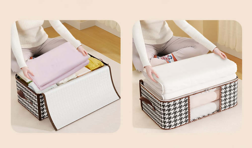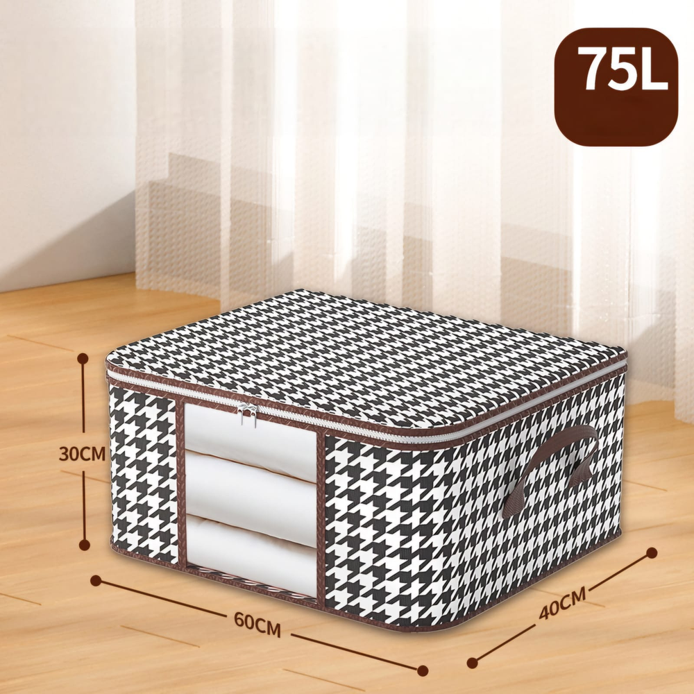 (Caja organizadora con visor, son perfectas para guardar mantas y/o prendas delicadas. Hecho con materiales ecológicos. Este es aprueba de humedad lo que hace que el contenido no se arruine, de fácil limpieza y su tamaño la hace adecuado para espacios reducidos. También es ideal para poder llevarla en tu valija impidiendo que dañe tus prendas).