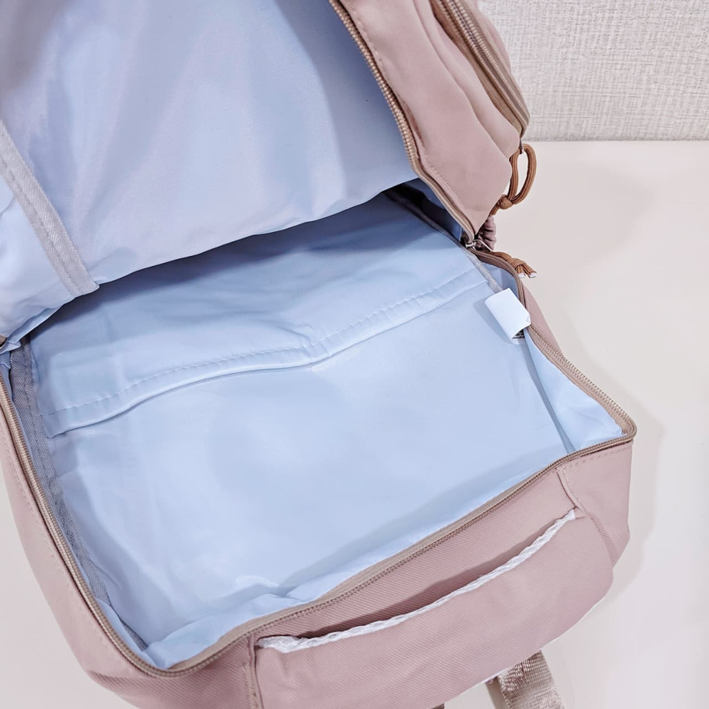 (Mochila escolar o casual, diseñada para llevar libros, útiles escolares, laptops, ropa, botellas de agua y otros objetos personales de forma cómoda y organizada. Dispone de un compartimiento principal con bolsillo interno , 2 compartimientos frontales, 2 bolsillos laterales, tiras acolchadas y un bolsillo trasero con cierre ).