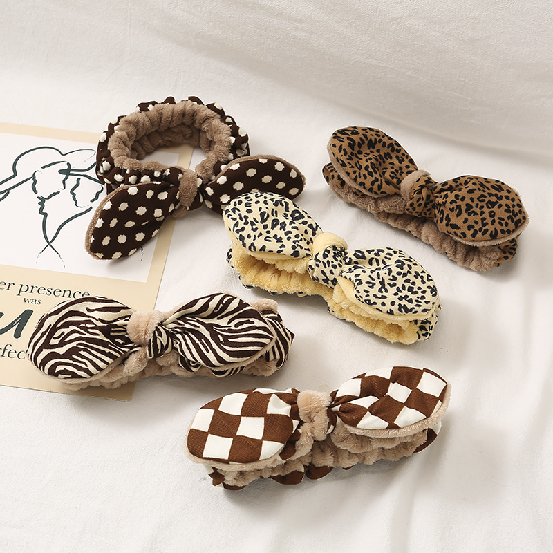 (Vincha de Skincare con temática de animal print en colores surtidos. Ideal para tu rutina de día a día. Disponible en varios colores).