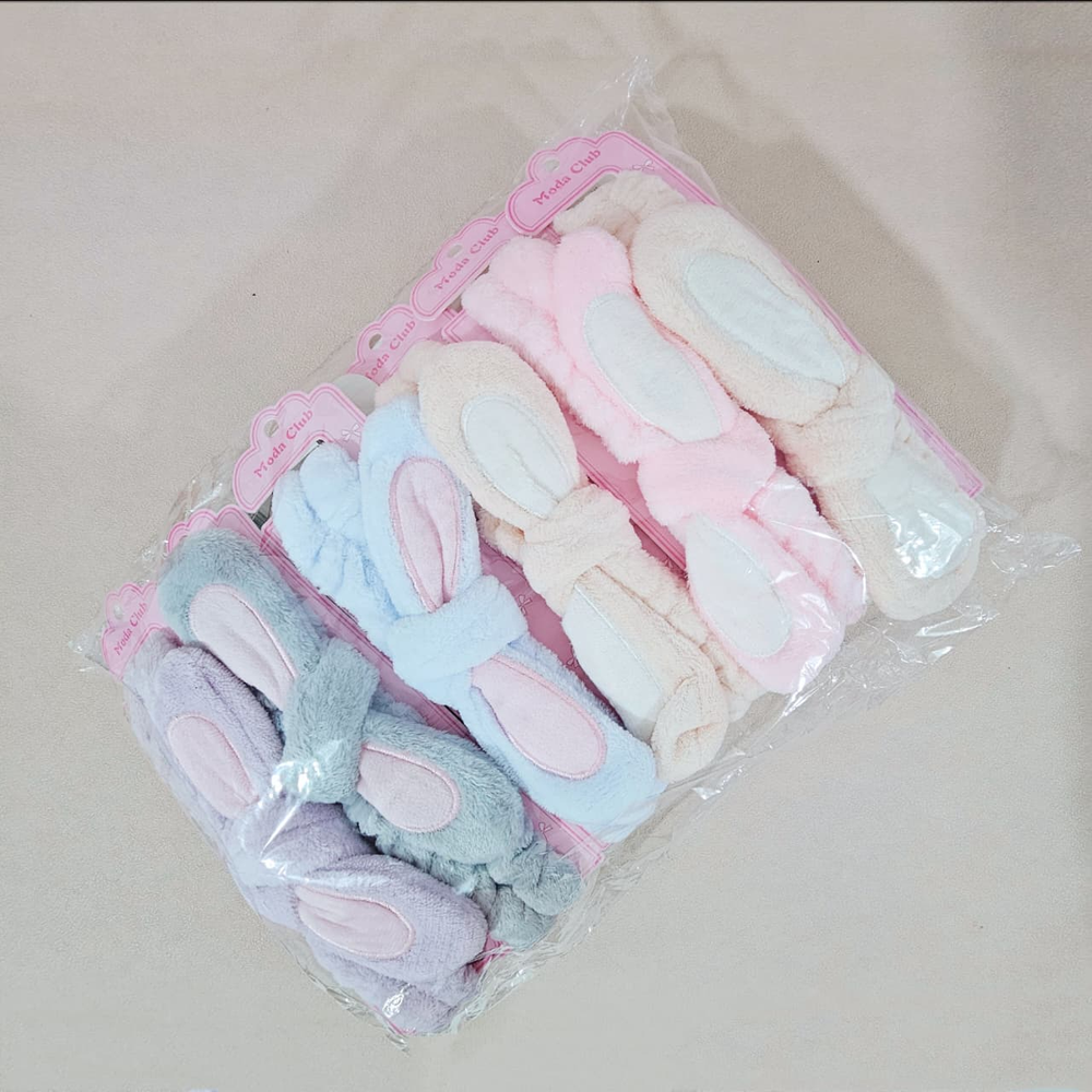(Vincha de Skincare con temática de orejas de conejo en colores surtidos. Ideal para tu rutina de día a día).