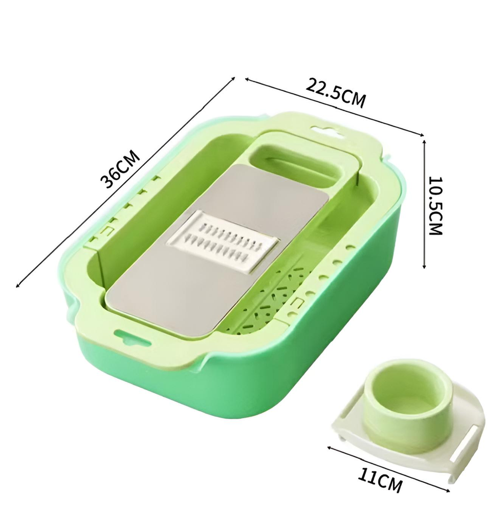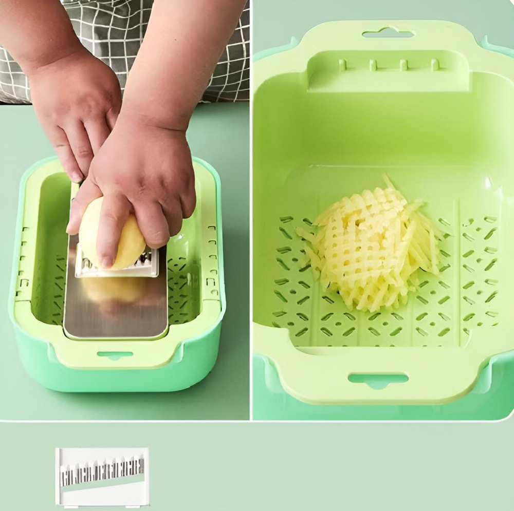 (Se utiliza para cortar y rebanar verduras y frutas de manera uniforme y rápida, en diferentes grosores y formas (rodajas, juliana, etc.). Permite realizar cortes con mayor seguridad y eficiencia que un cuchillo tradicional, especialmente para grandes cantidades o cortes muy finos. Las diferentes cuchillas intercambiables permiten una gran variedad de cortes y preparaciones). (Ut22)