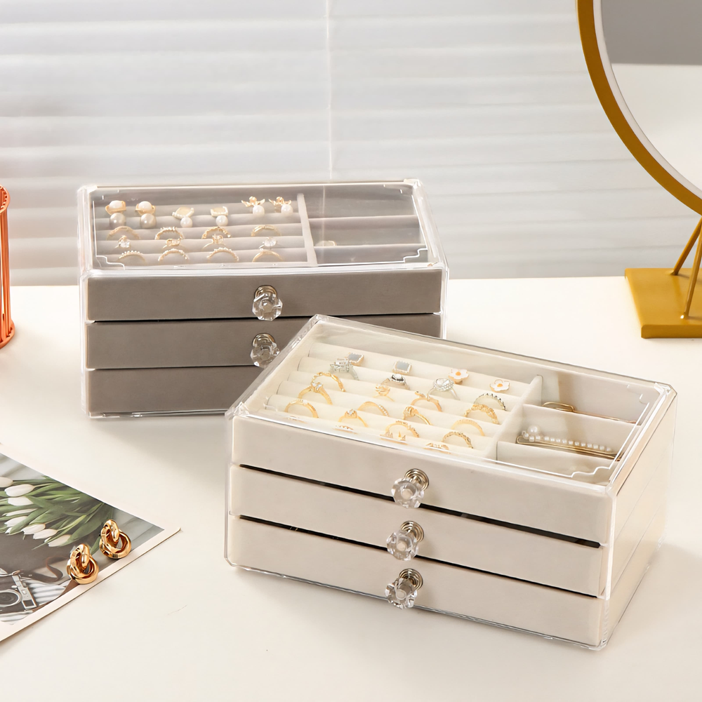 (Si no sabe cómo guardar sus joyas en su tocador, ahora puede elegir nuestro organizador de joyas para resolver sus molestias y dejar de preocuparse por no encontrar sus joyas. Es muy delicado y cuenta con cajoncitos).