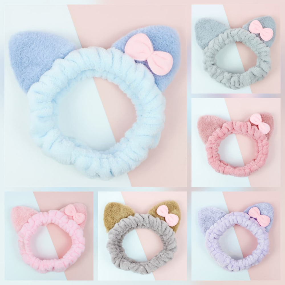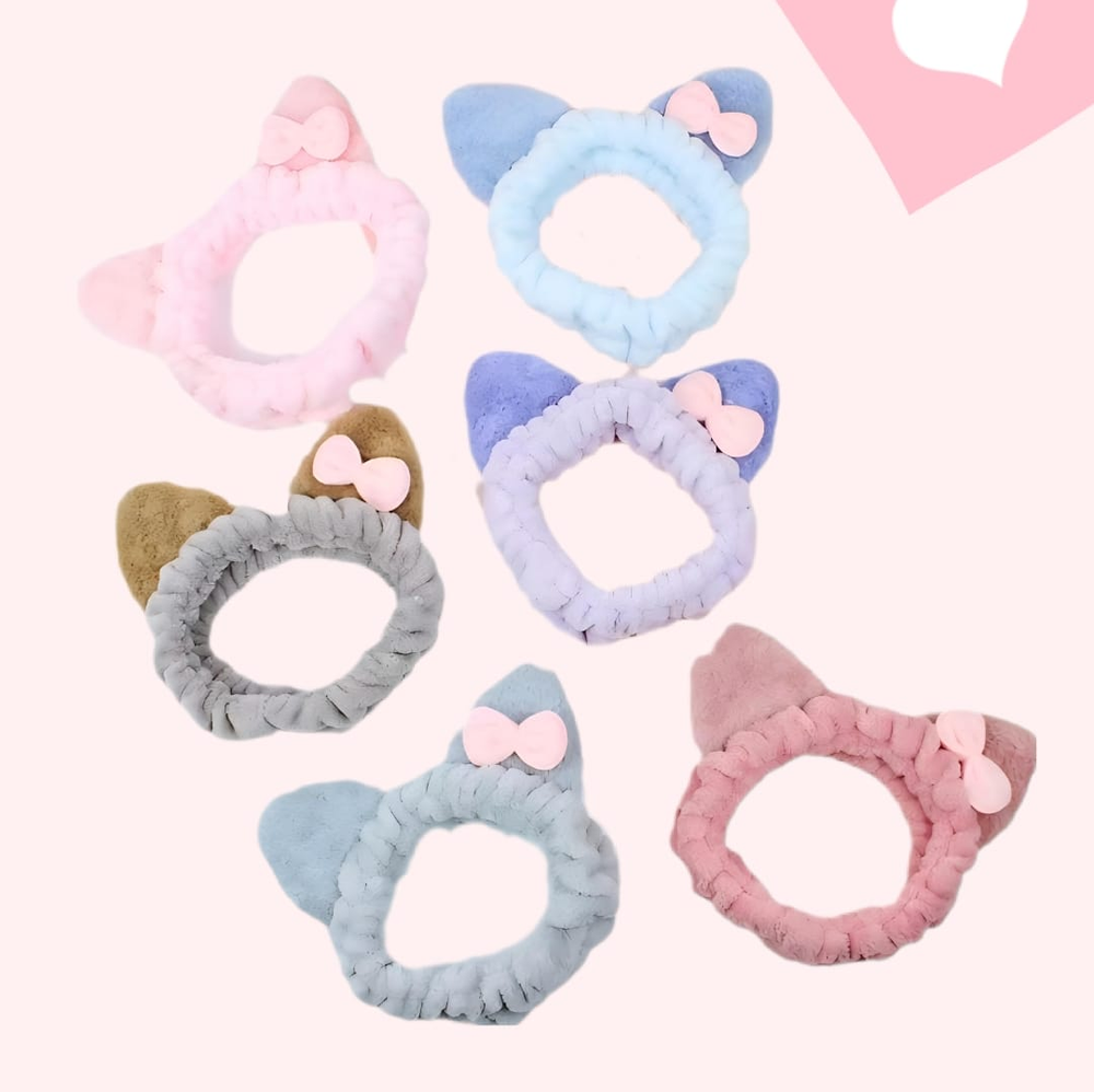 (Vincha de Skincare con orejitas en colores surtidos. Ideal para tu rutina de día a día).