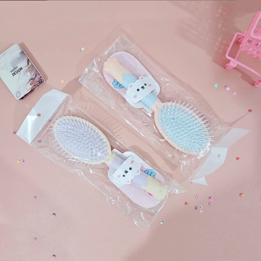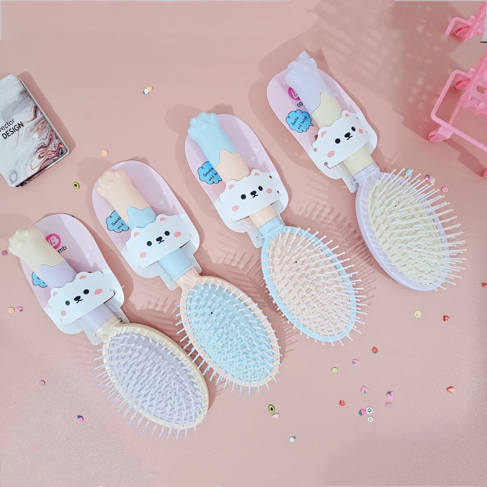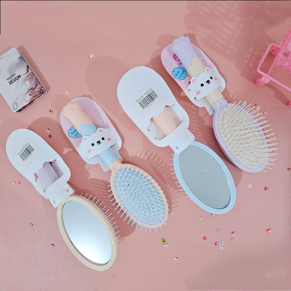 (Cepillo de pelo con espejo en la parte trasera , con cojín y previene la estática. Disponible en tres colores ).