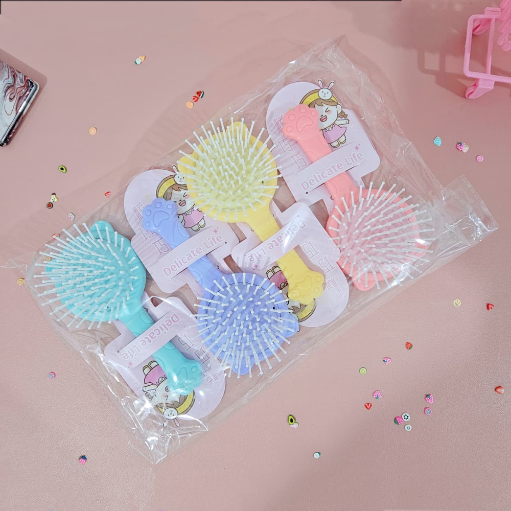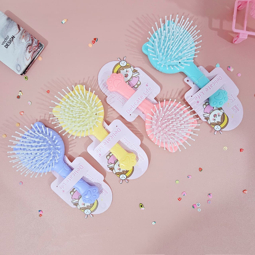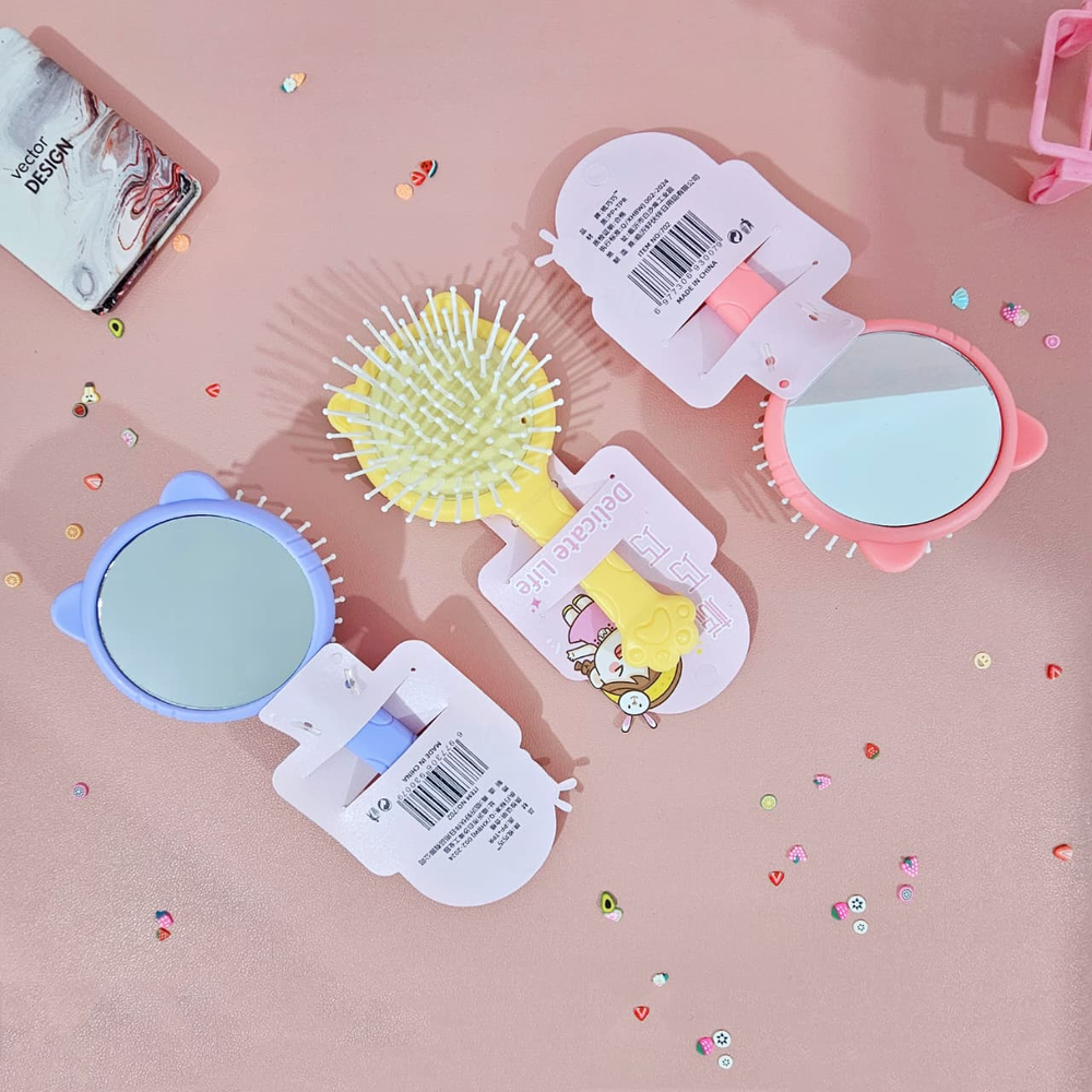 (Cepillo de pelo con orejas de gatito y espejo en la parte trasera, con cojín y previene la estática. Disponible en cuatro colores ).