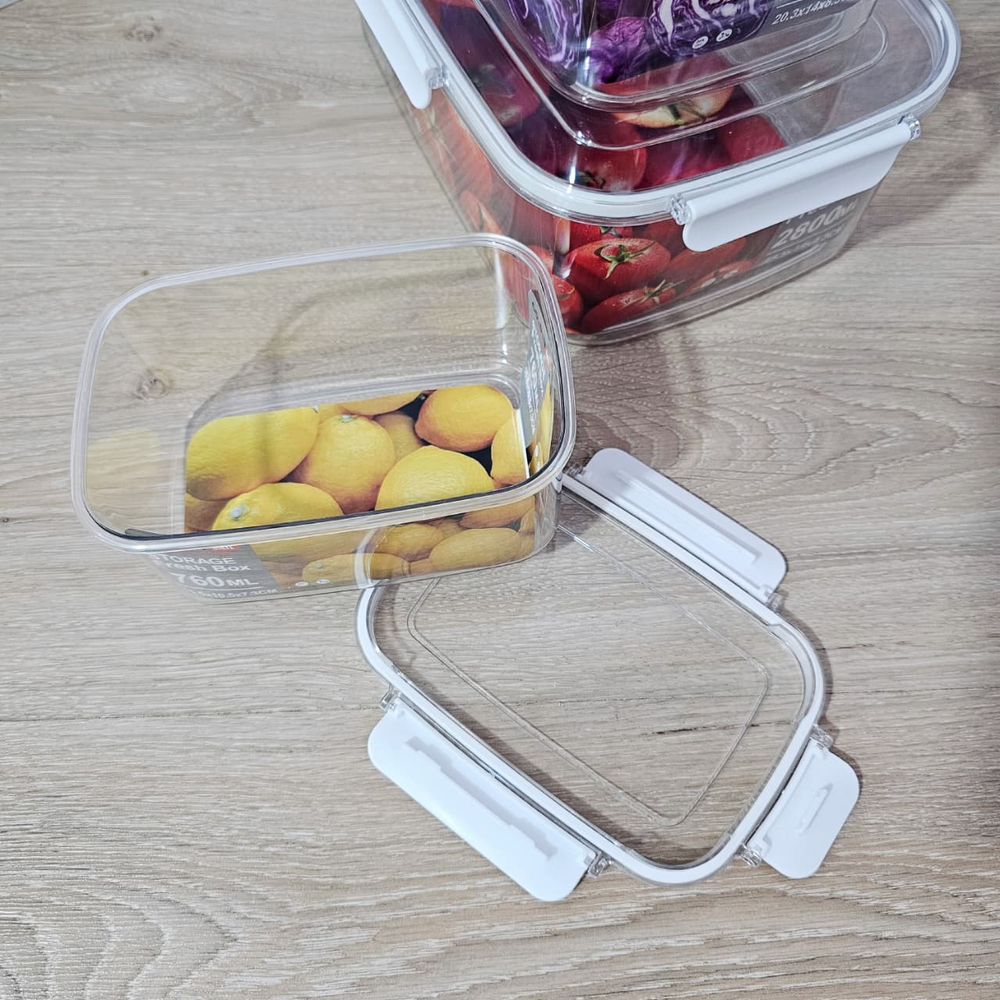 Tupper de plástico diseñado para almacenar alimentos, especialmente frutas y verduras).