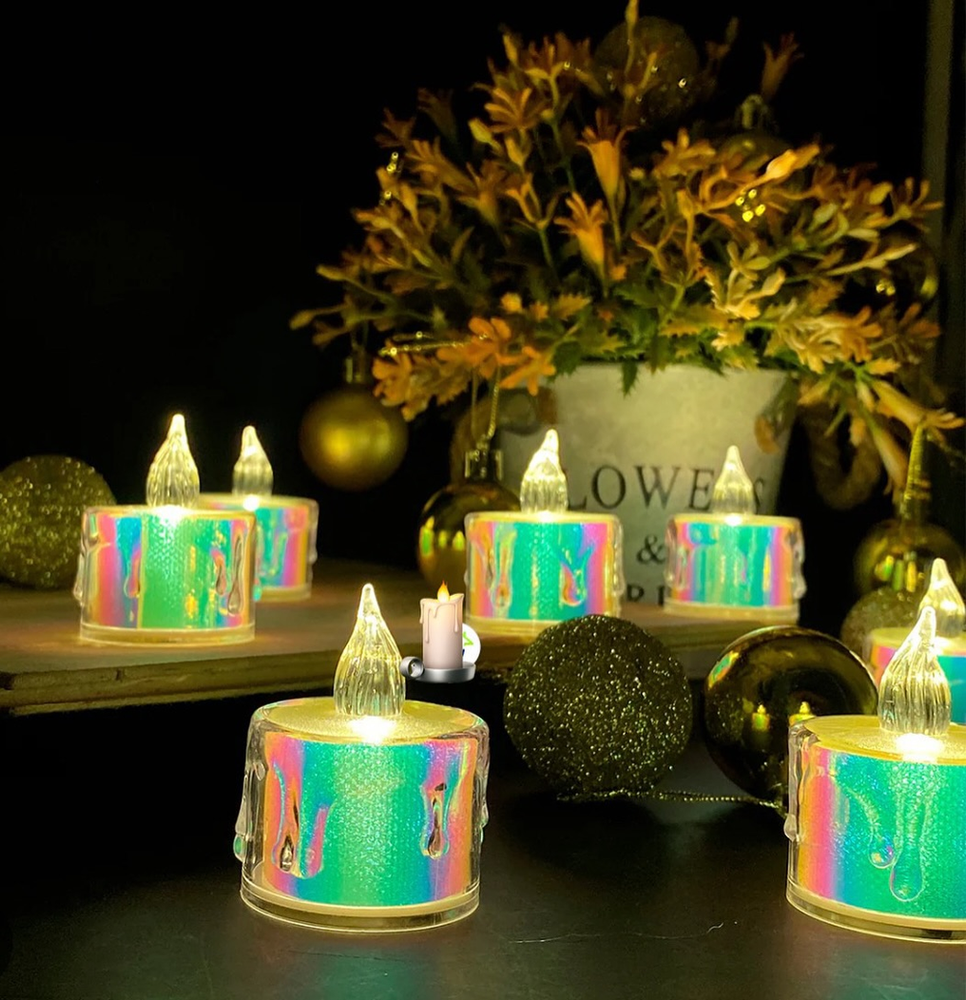 (Velitas led de luz cálida chica, cuenta con un interruptor de encendido/apagado, funciona con 3 pilas de boton LR1130 (incluidas) .)