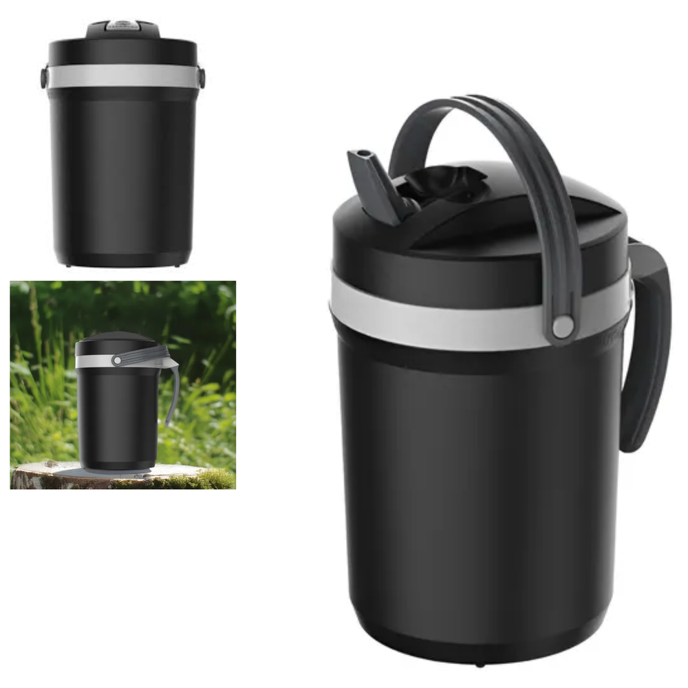(Esta jarra tiene una capacidad de 2.5 litros, ideal para mantener bebidas frías como tereré, jugos o té helado, y es perfecta para compartir o llevar a campamentos, pesca o la playa. Cuenta con dos asas (una móvil para transporte y otra fija para servir), un pico vertedor direccionable, y una boca grande que facilita la limpieza y el llenado. Está fabricada en plástico libre de BPA, lo que garantiza la seguridad de tus bebidas, y su aislamiento térmico en PU asegura una alta resistencia y una conservación diferenciada de la temperatura. Incluye un sistema antigoteo y tiene una superficie antideslizante).