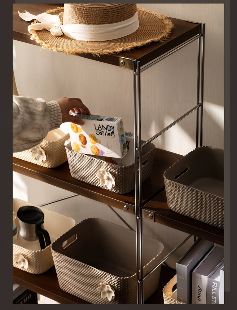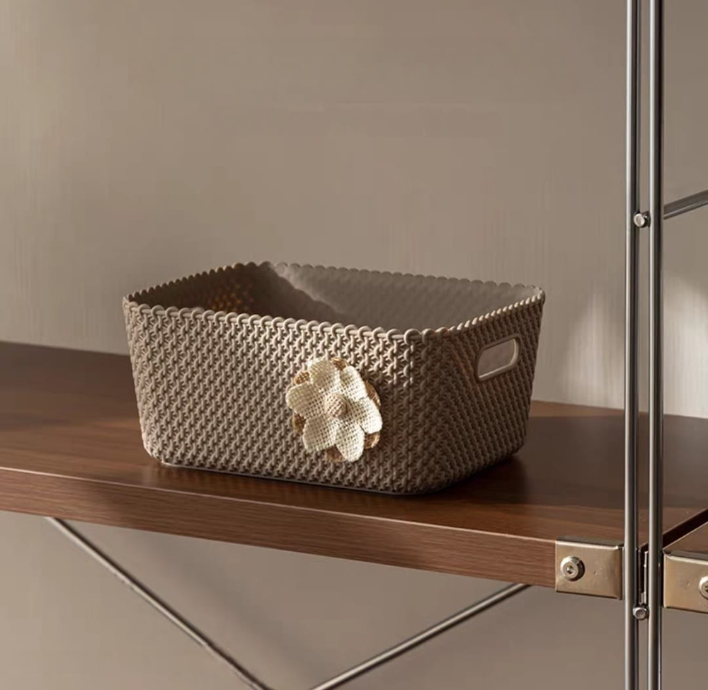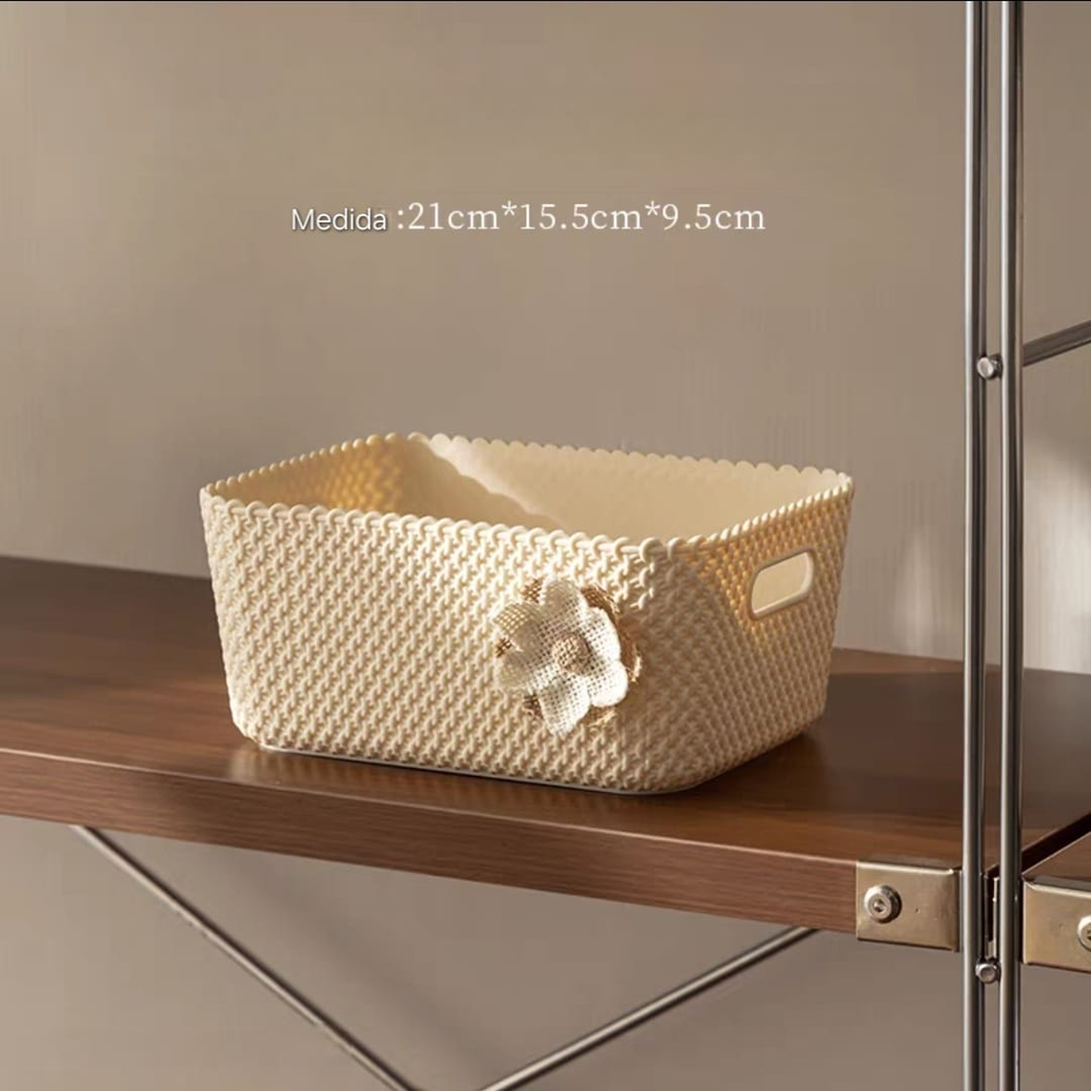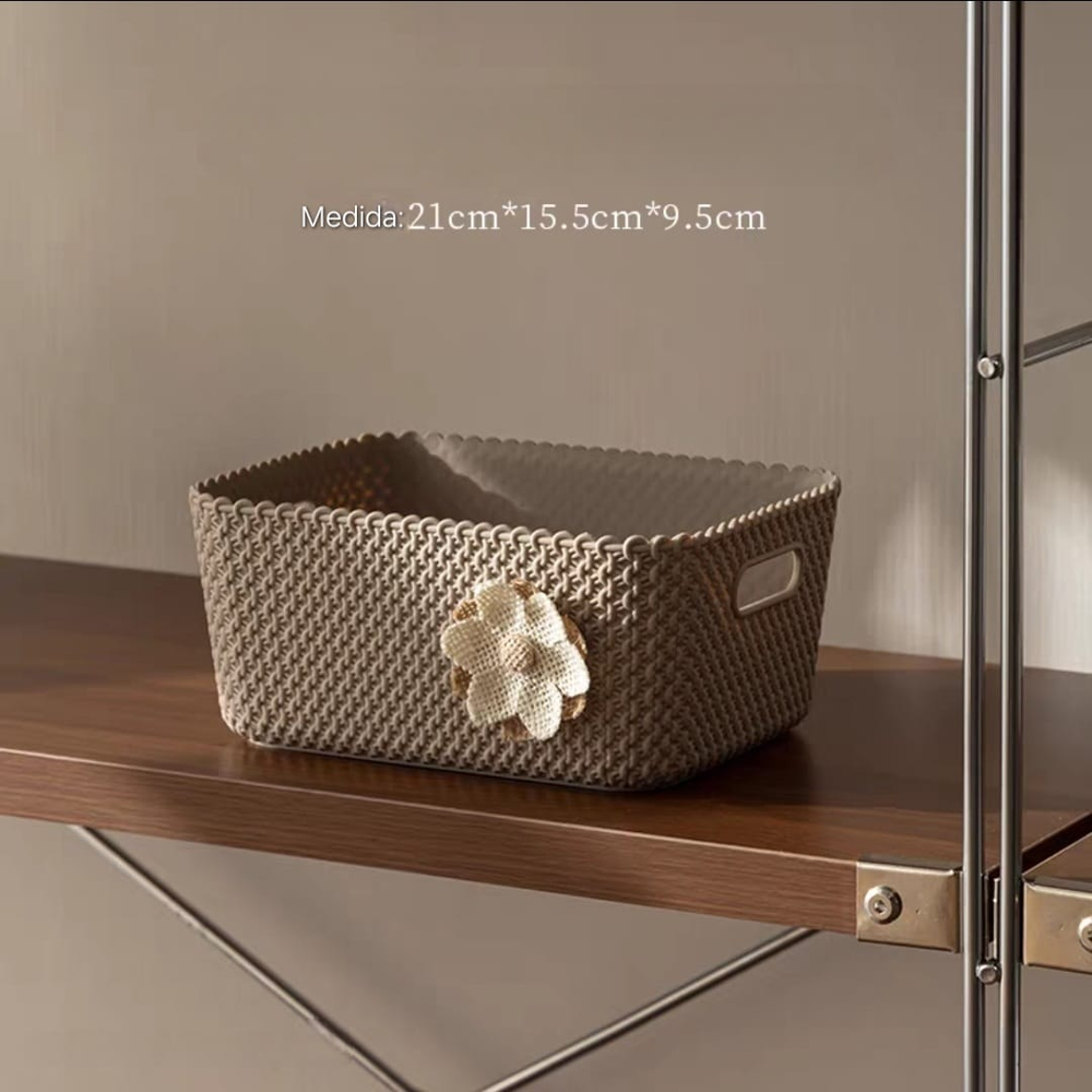 (Canasta de almacenamiento, específicamente una cesta de almacenamiento estilo ratán. Sirve para organizar, almacenar y optimizar espacios en diferentes áreas del hogar como habitaciones, baños, estudios, armarios, lavanderías, etc). ut24