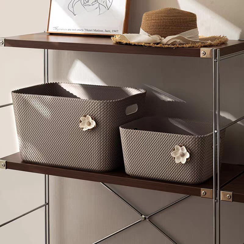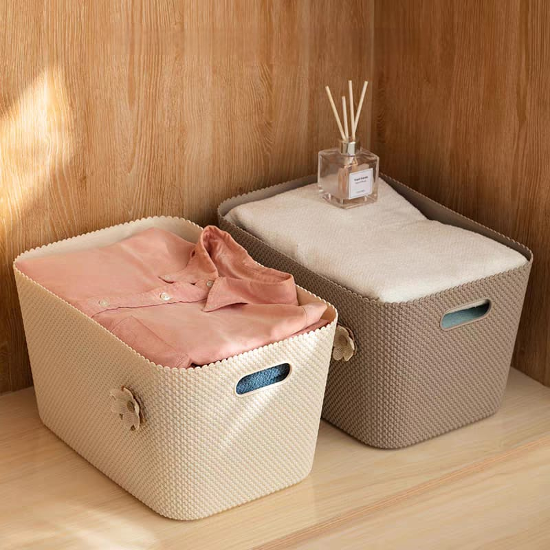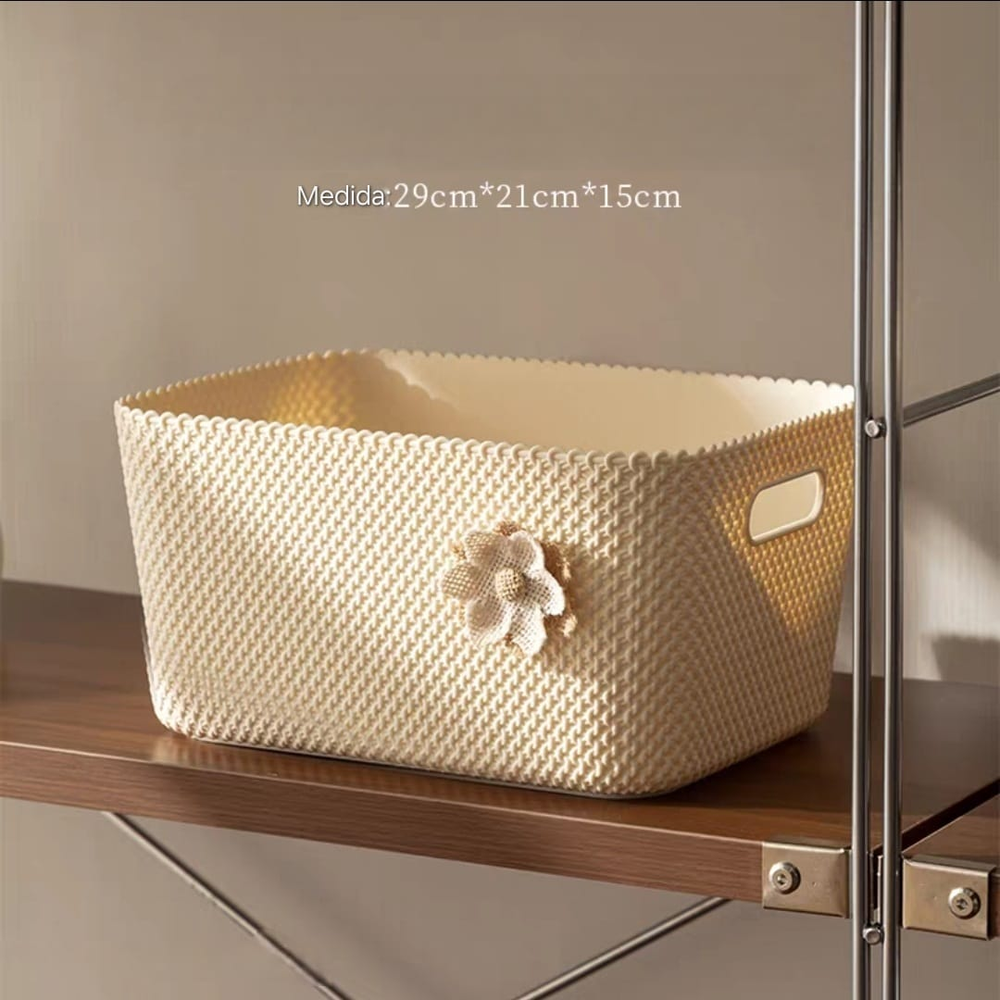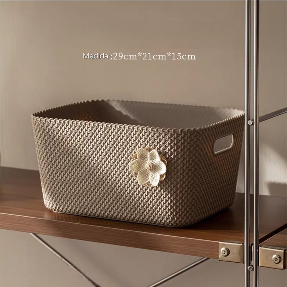 (Canasta de almacenamiento, específicamente una cesta de almacenamiento estilo ratán. Sirve para organizar, almacenar y optimizar espacios en diferentes áreas del hogar como habitaciones, baños, estudios, armarios, lavanderías, etc). ut24