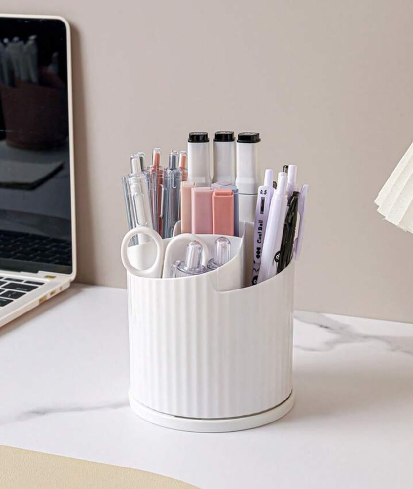 (Portacosmetico diseñado para mantener ordenados artículos como bolígrafos, marcadores, tijeras y otros útiles de oficina o cosméticos. Ayuda a reducir el desorden y mejorar la productividad al facilitar el acceso a los elementos esenciales).