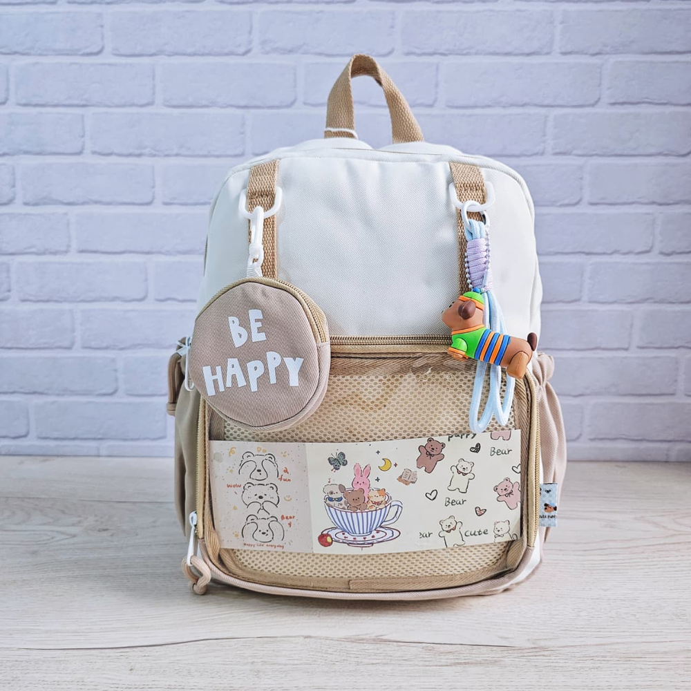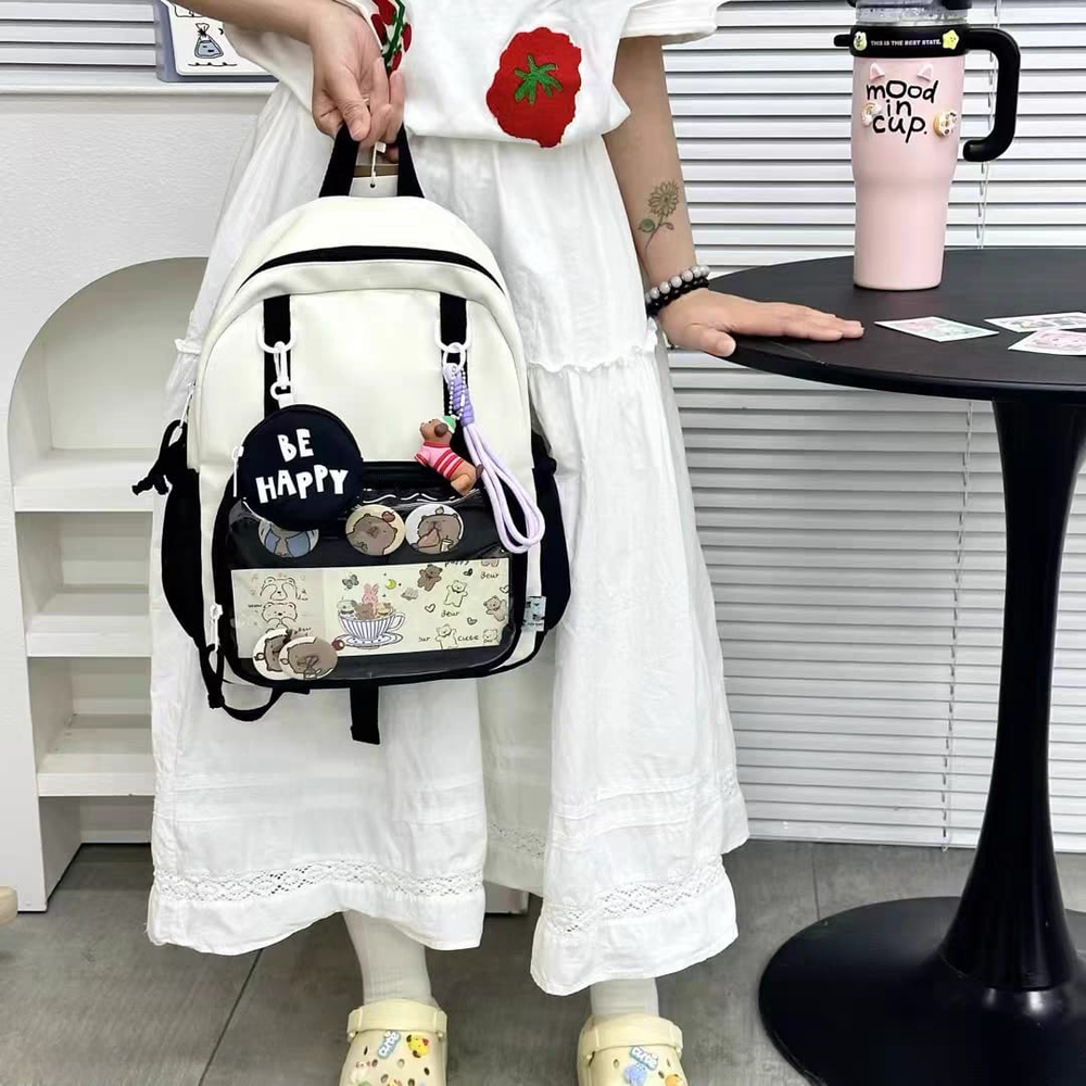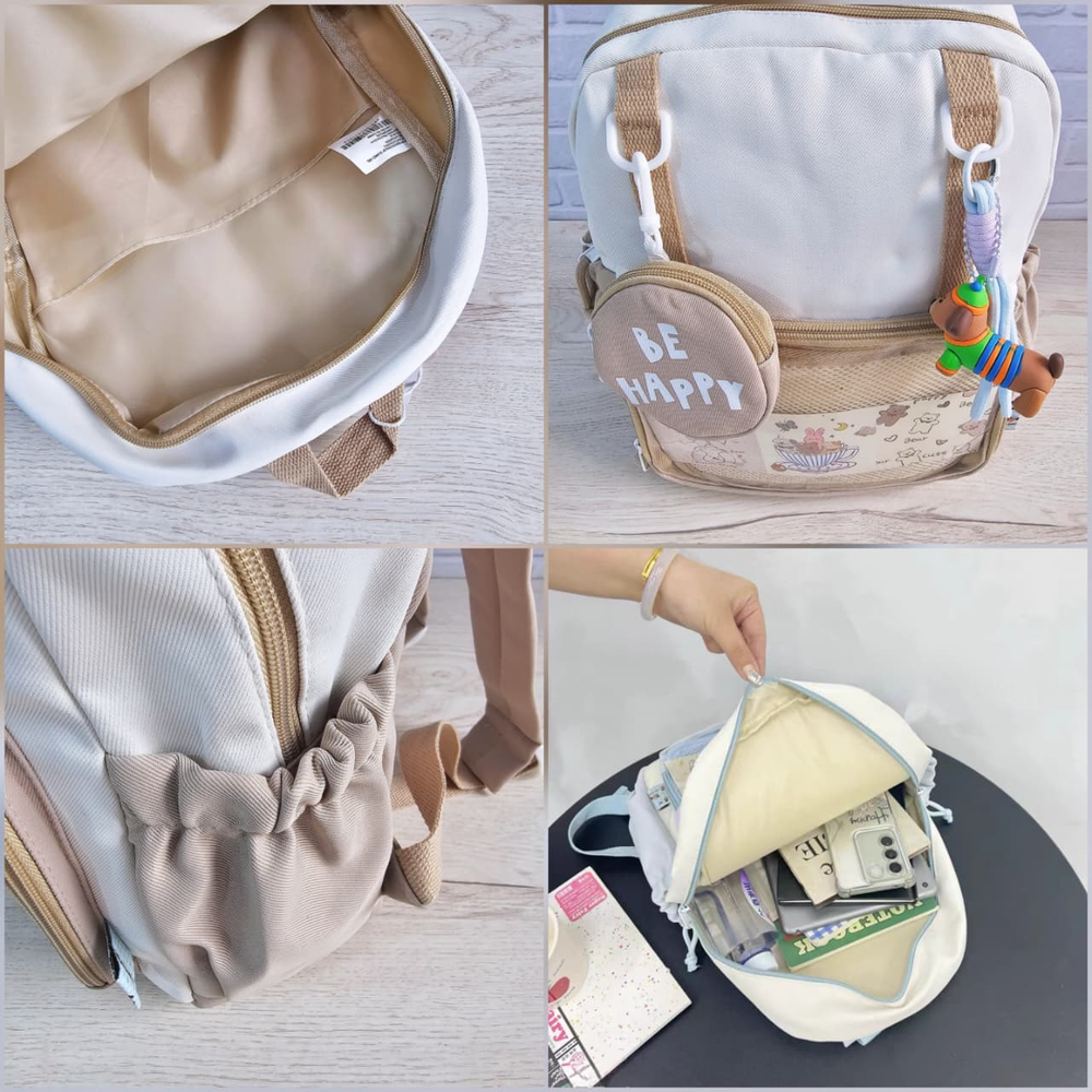 (Mochila escolar o casual, diseñada para llevar libros, útiles escolares, laptops, ropa, botellas de agua y otros objetos personales de forma cómoda y organizada).