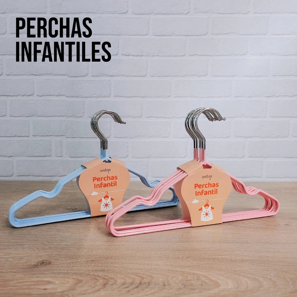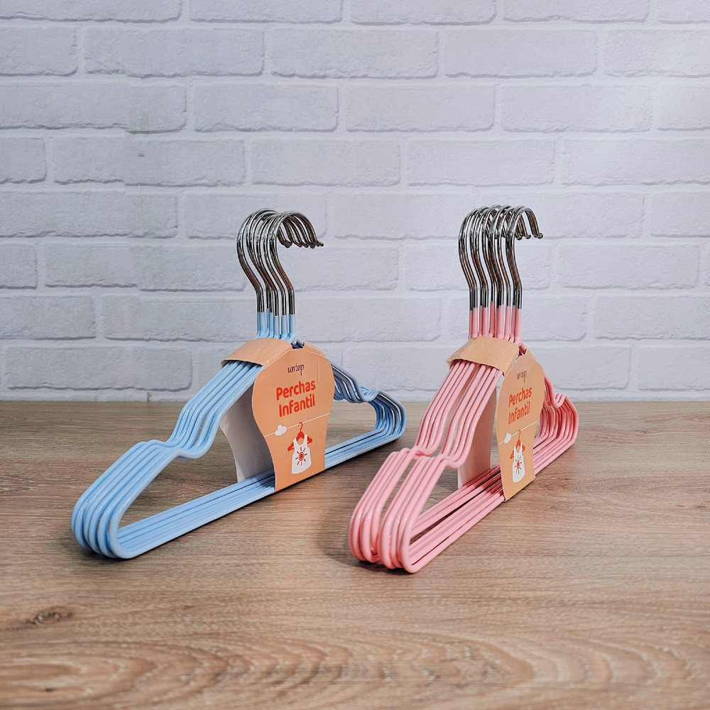 (Set de perchas infantiles de acero inoxidable con revestimiento antideslizante, disponible en dos colores. Ideales para el hogar).