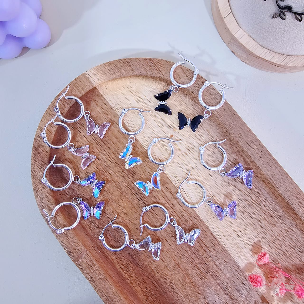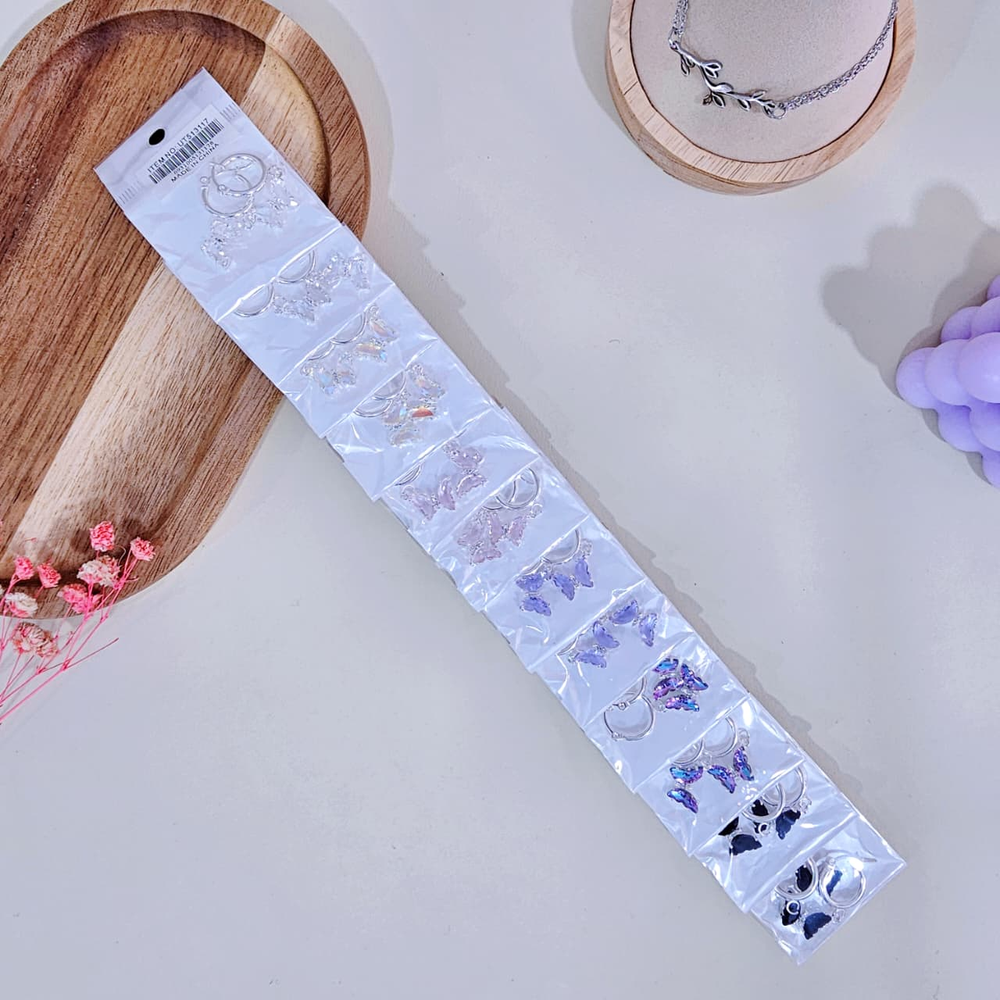 (Blister x 12 Pares de Aritos con diseño de mariposa en diferentes colores, son super delicado y bonitos).