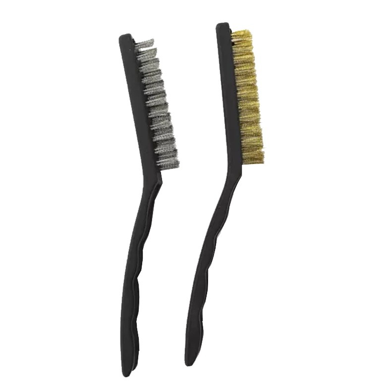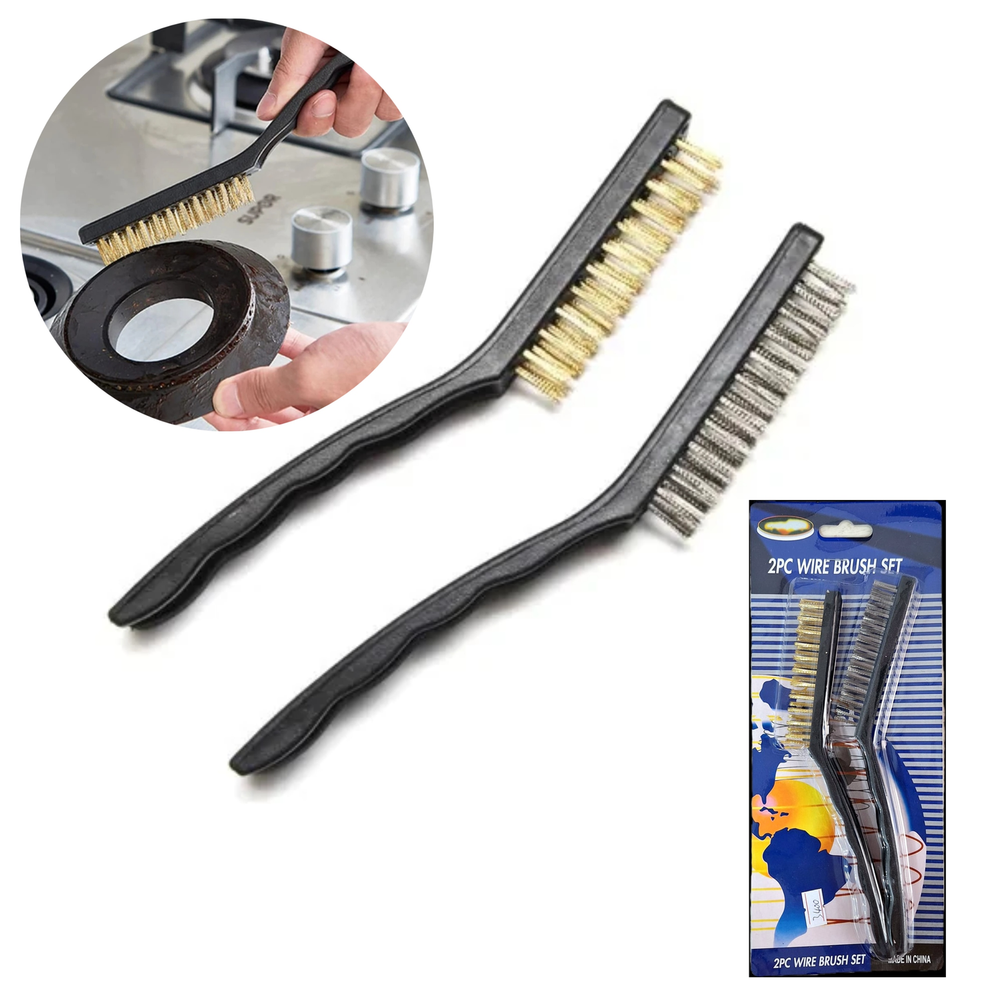 (Los cepillos de alambre, son herramientas versátiles utilizadas para diversas tareas de limpieza y preparación de superficies. Son ideales para limpiar superficies metálicas y eliminar óxido, escoria y corrosión. Se usan para limpiar y preparar superficies antes de soldar, pintar o aplicar adhesivos, eliminando impurezas como pintura vieja, cascarilla de laminación y suciedad. También son efectivos para limpiar hilos, parrillas, azulejos y otras superficies).