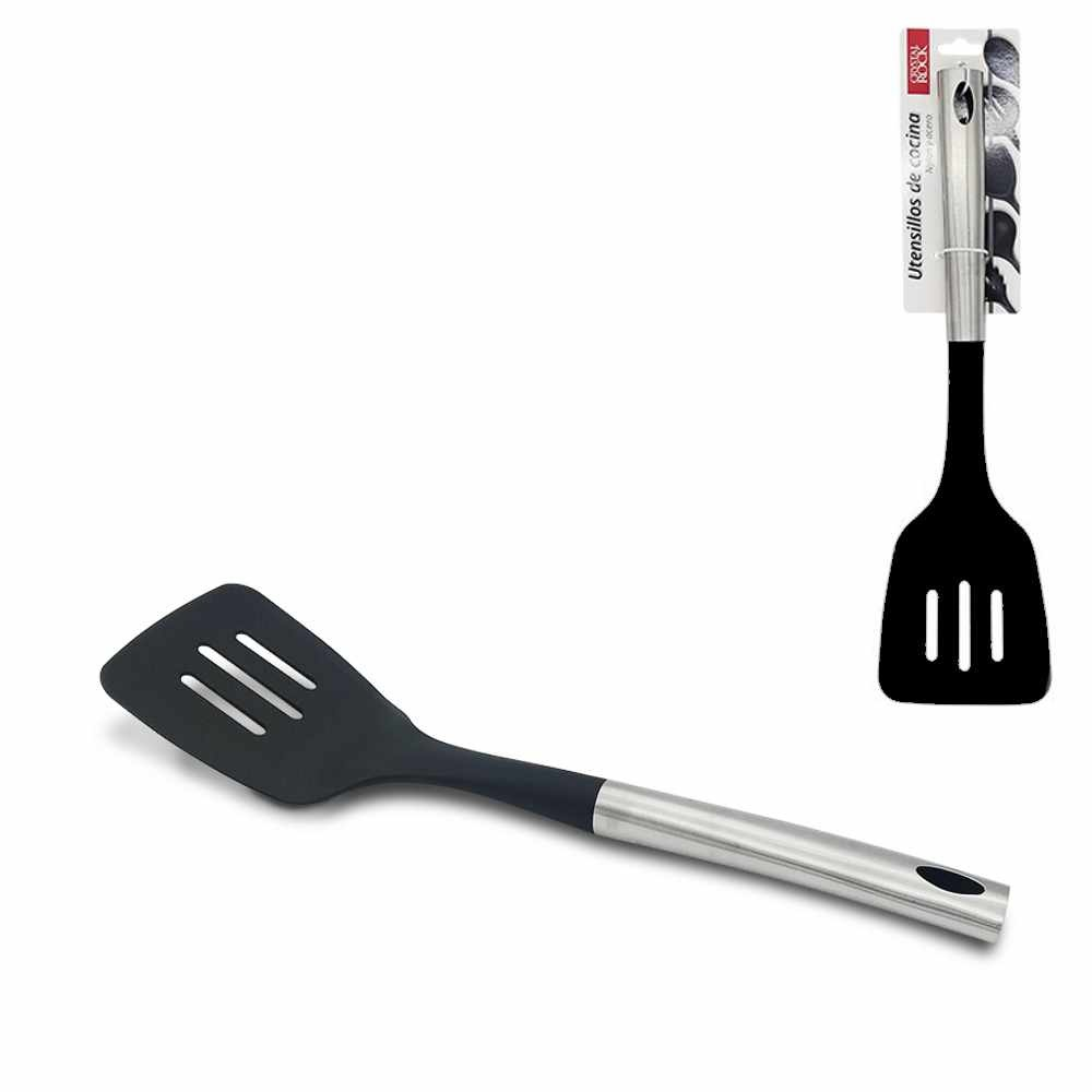 (Cuenta con un mango de acero inoxidable que le confiere durabilidad y resistencia. Es ideal para usar en superficies antiadherentes como teflón, ya que no las raya. Utensilio de cocina esencial, ideal para planchas y sartenes con recubrimiento antiadherente).