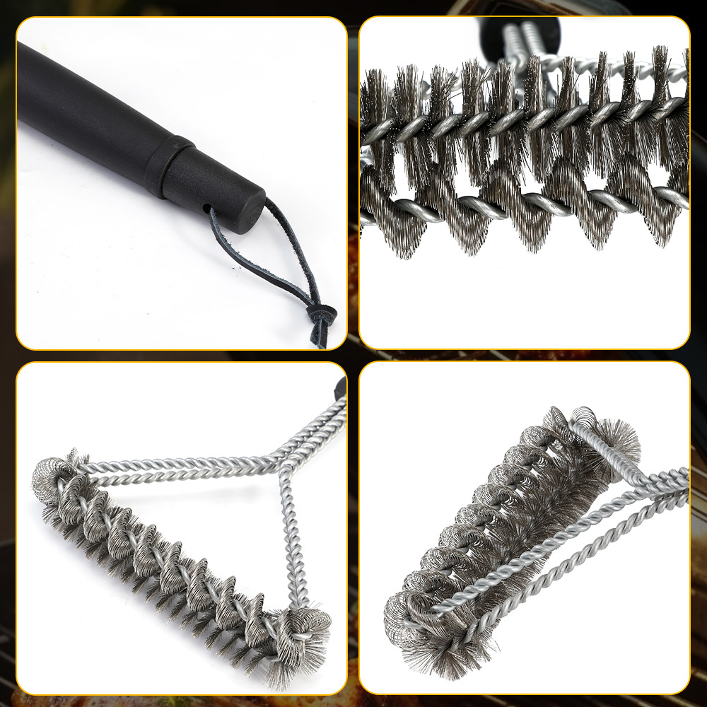 (Cepillo ideal para remover la grasa, restos de comida quemada y suciedad acumulada en las rejillas de la parrilla después de cocinar. Ayuda a mantener la parrilla limpia y en óptimas condiciones para futuros usos, asegurando una mejor higiene al cocinar alimentos. Tiene cerdas resistentes de acero inoxidable y un mango ergonómico para facilitar la limpieza y alcanzar todas las áreas de la parrilla).