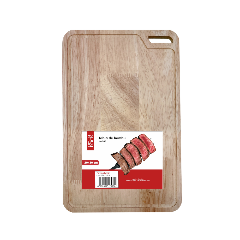 (Tabla para picar de madera chica con forma rectangular sus puntas redondeadas y además cuenta con un agarradera para sujetarla).