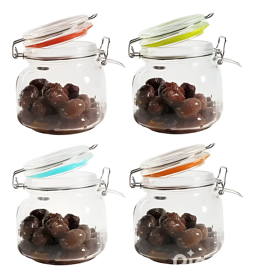 Frasco ideal para almacenar una amplia variedad de alimentos secos como granos, cereales, nueces, especias y conservas caseras, entre otros. Ofrecen un almacenamiento seguro e higiénico, ya que el vidrio es inerte y no reacciona con los alimentos, manteniendo su frescura y sabor. Son una opción ecológica, ya que el vidrio es un material reciclable y reutilizable, reduciendo la dependencia de envases de plástico desechables. Su transparencia permite ver fácilmente el contenido y la cantidad restante, facilitando la organización en la cocina o despensa).
