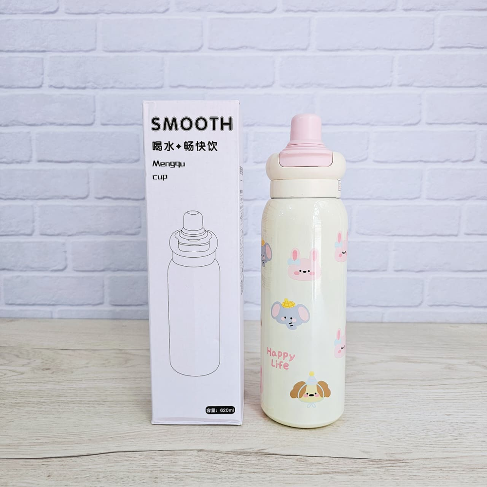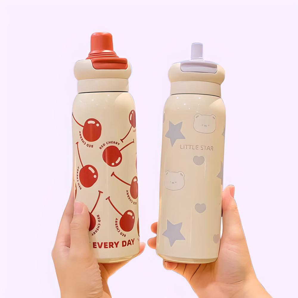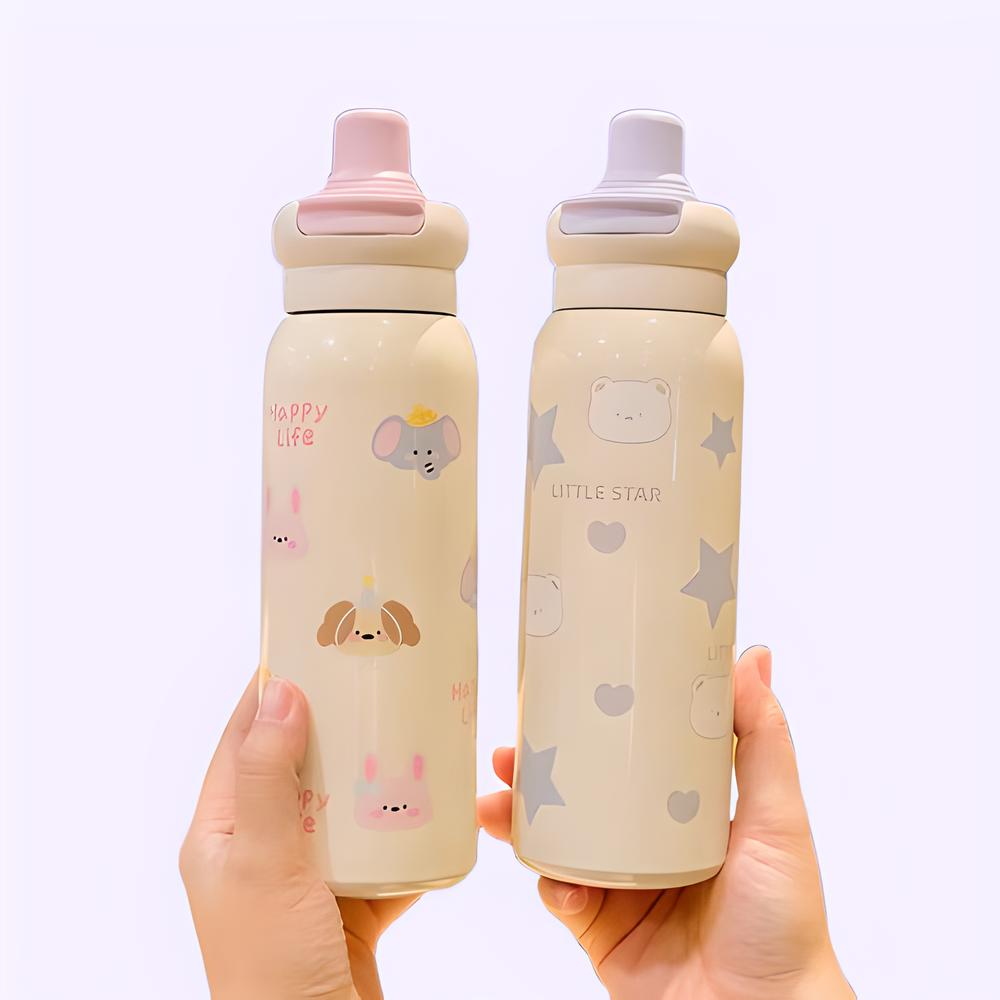 (Esta botella de acero inoxidable cuenta con una capacidad de 620ml, tapa hermética, base antideslizante, doble pico (uno succionador y otro tipo sorbete ). La misma cuenta con una manija para un mejor transporte, mantiene tanto agua fría como caliente. Material de excelente calidad).