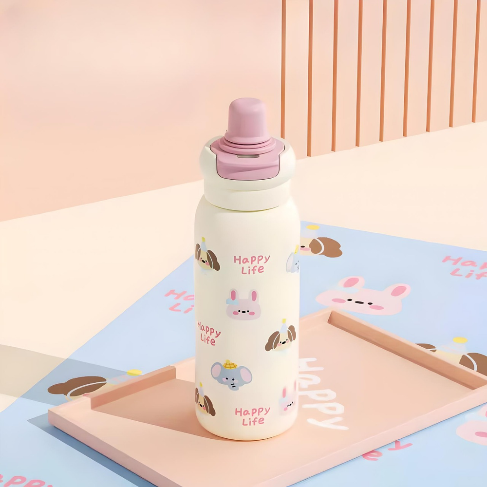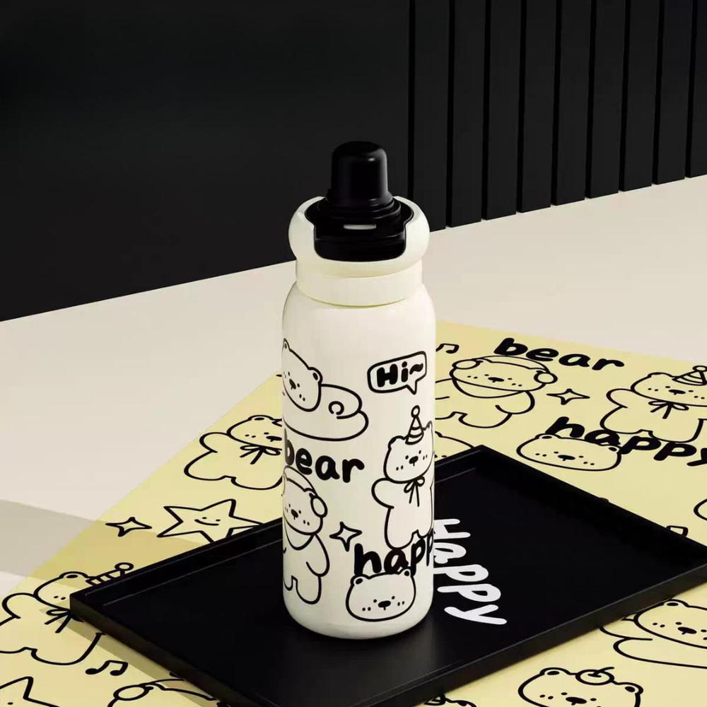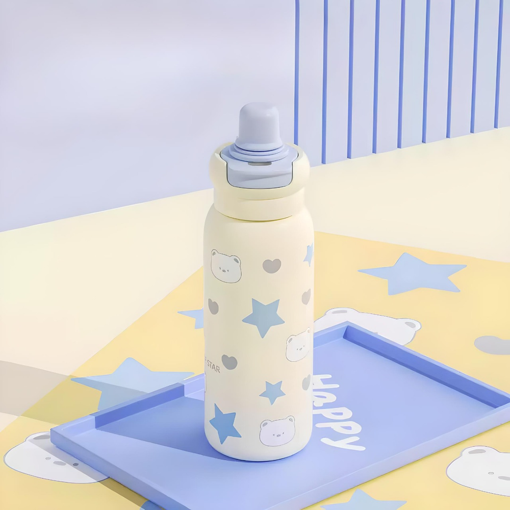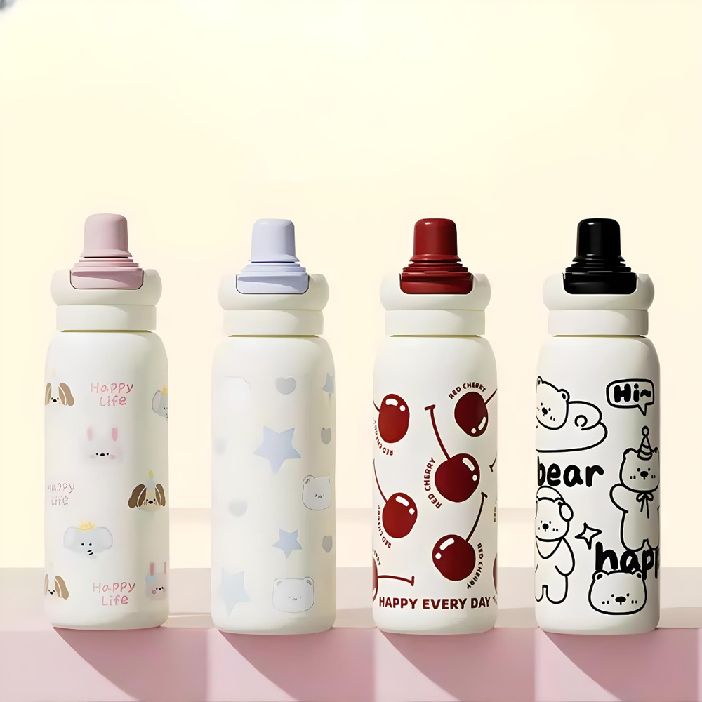 (Esta botella de acero inoxidable cuenta con una capacidad de 620ml, tapa hermética, base antideslizante, doble pico (uno succionador y otro tipo sorbete ). La misma cuenta con una manija para un mejor transporte, mantiene tanto agua fría como caliente. Material de excelente calidad).