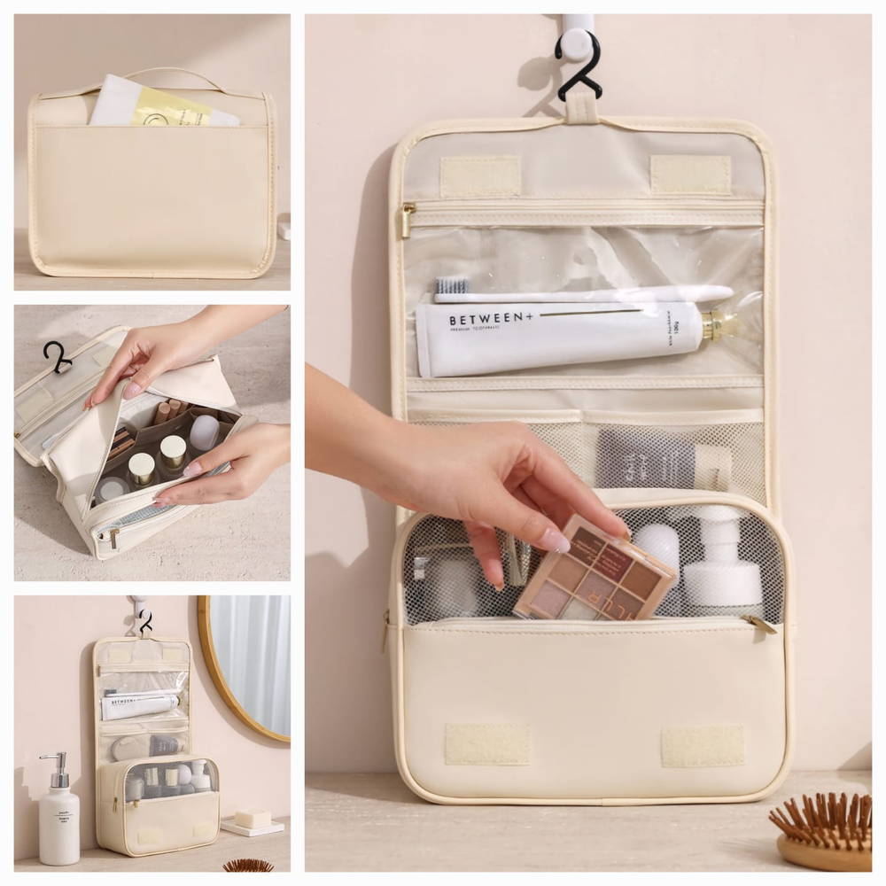 (Neceser organizador de viaje con gancho para colgar, ideal para guardar cosméticos y artículos de tocador. Permite organizar eficientemente productos de cuidado personal, maquillaje y artículos de aseo gracias a sus compartimentos internos y bolsillos de malla. facilitando el acceso a los artículos y manteniendo el espacio ordenado, ideal para viajes o baños pequeños. Fabricado en materiales resistentes. Es adecuado tanto para hombres como para mujeres, y es útil para viajes, vacaciones, paseos o incluso para organizar artículos en casa).