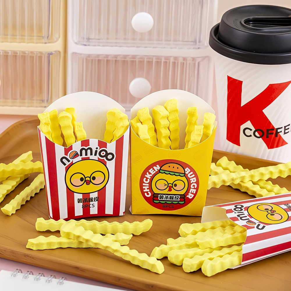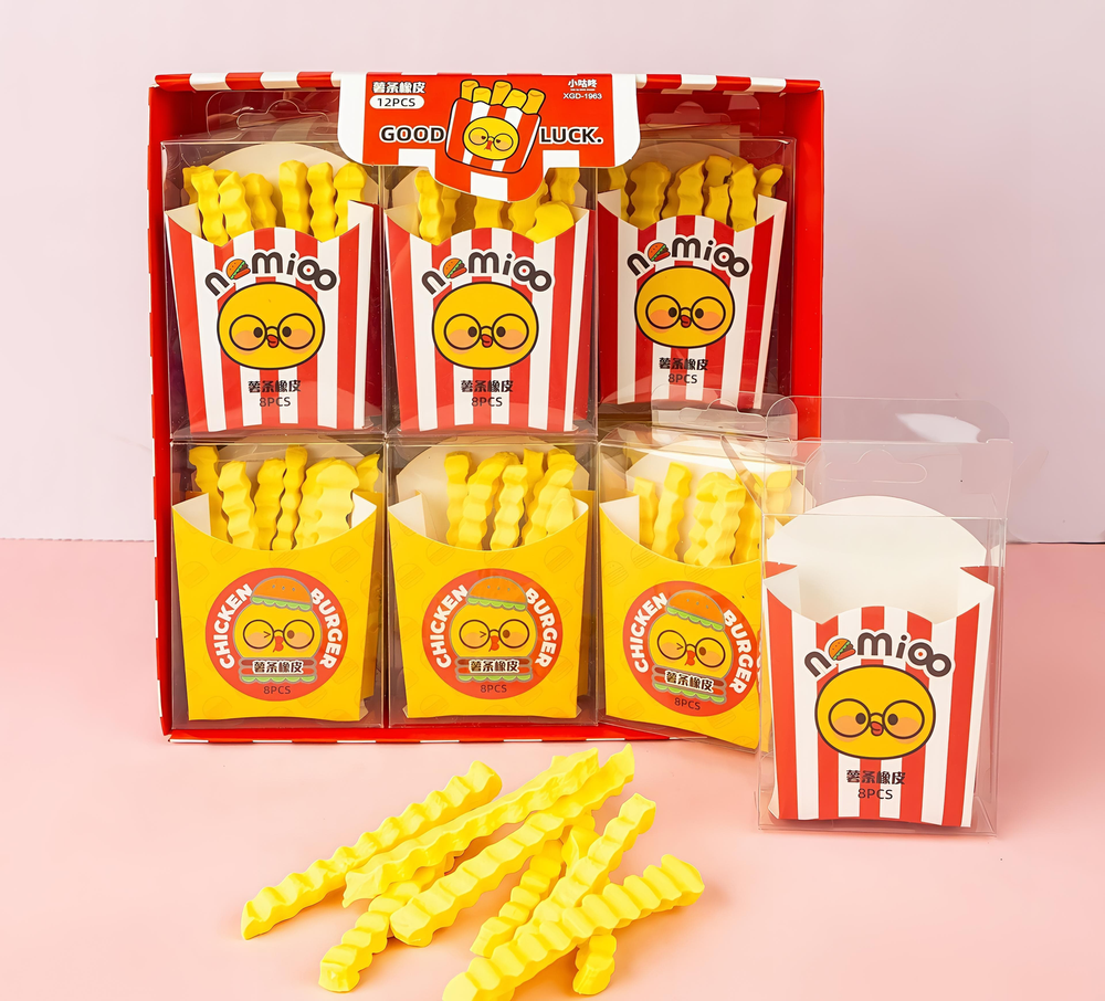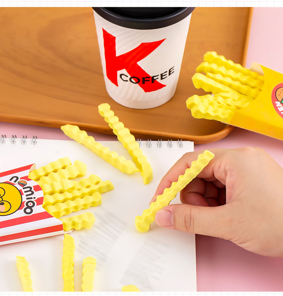 (Goma para borrar con diseño en forma de papas fritas. Vienen en caja x 12 unidades).