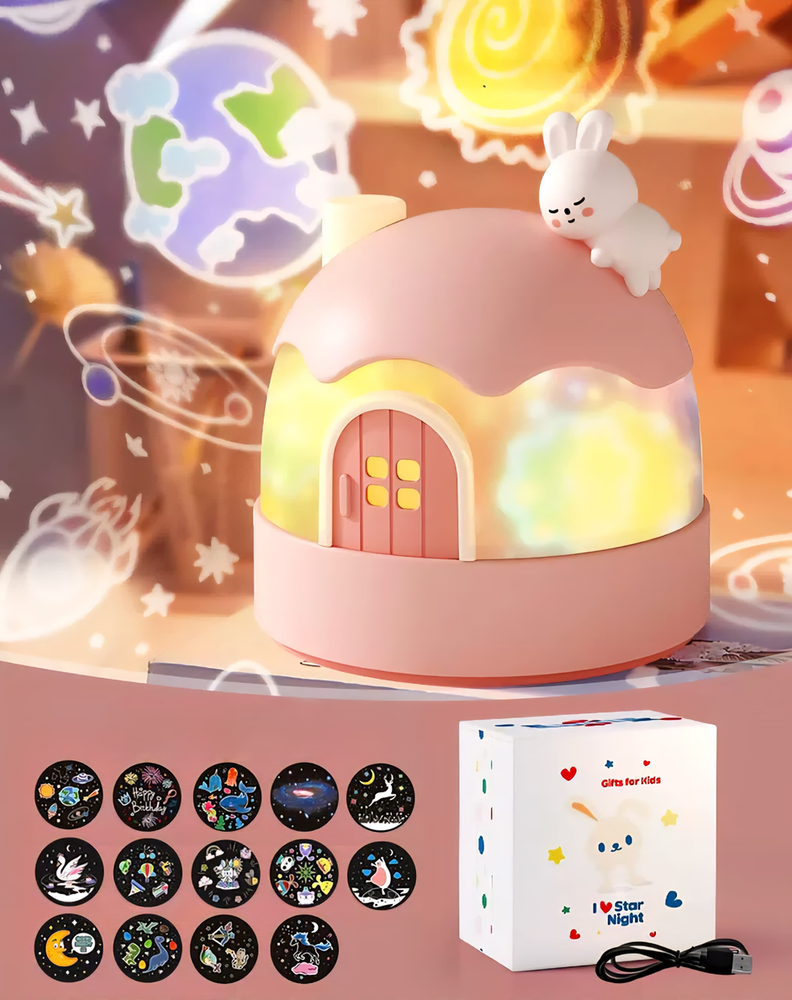 (Lámpara que proyecta imágenes de estrellas, planetas, estrellas, etc en el techo o paredes de la habitación oscura, generando una atmósfera relajante y mágica. Especialmente útil para niños, ya que la proyección de un cielo estrellado puede ayudar a crear una rutina para la hora de dormir y conciliar el sueño. Ideal para decorar habitaciones, crear un ambiente especial en casa. Se carga con cable USB, incluye control remoto. Equipada con una luz LED de bajo consumo, es segura para la vista, incluso para los más pequeños. Trae 7 láminas de velador con diferentes formas y figuras. Además, es completamente inalámbrica, lo que la hace ideal para viajes y uso en diferentes habitaciones. Cuenta con Rotación de 360 grados. Para proyectar sobre la pared debe quitarle la tapa principal). (Ut28)