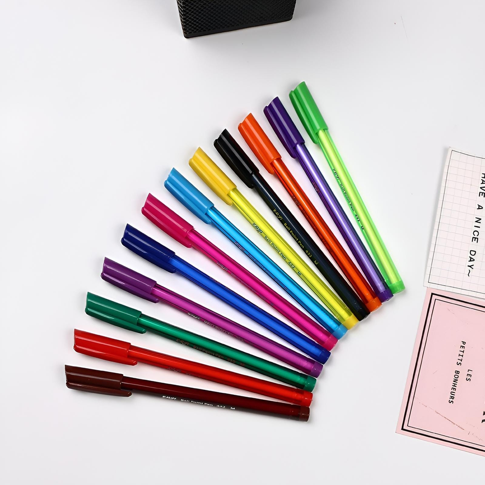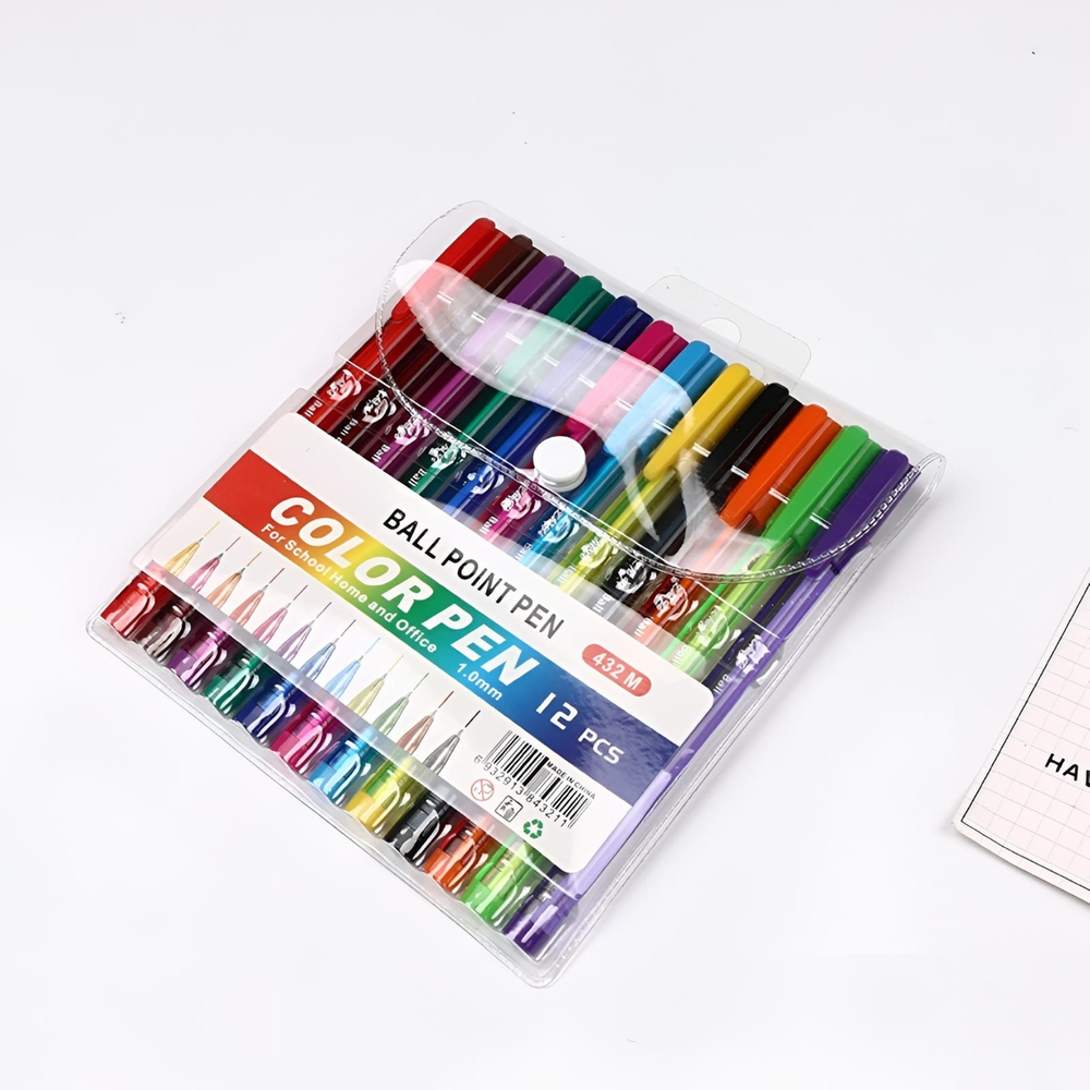 (Pack de 12 unidades de lapiceras color surtidas matte. Con punta metálica y cuerpo redondo).