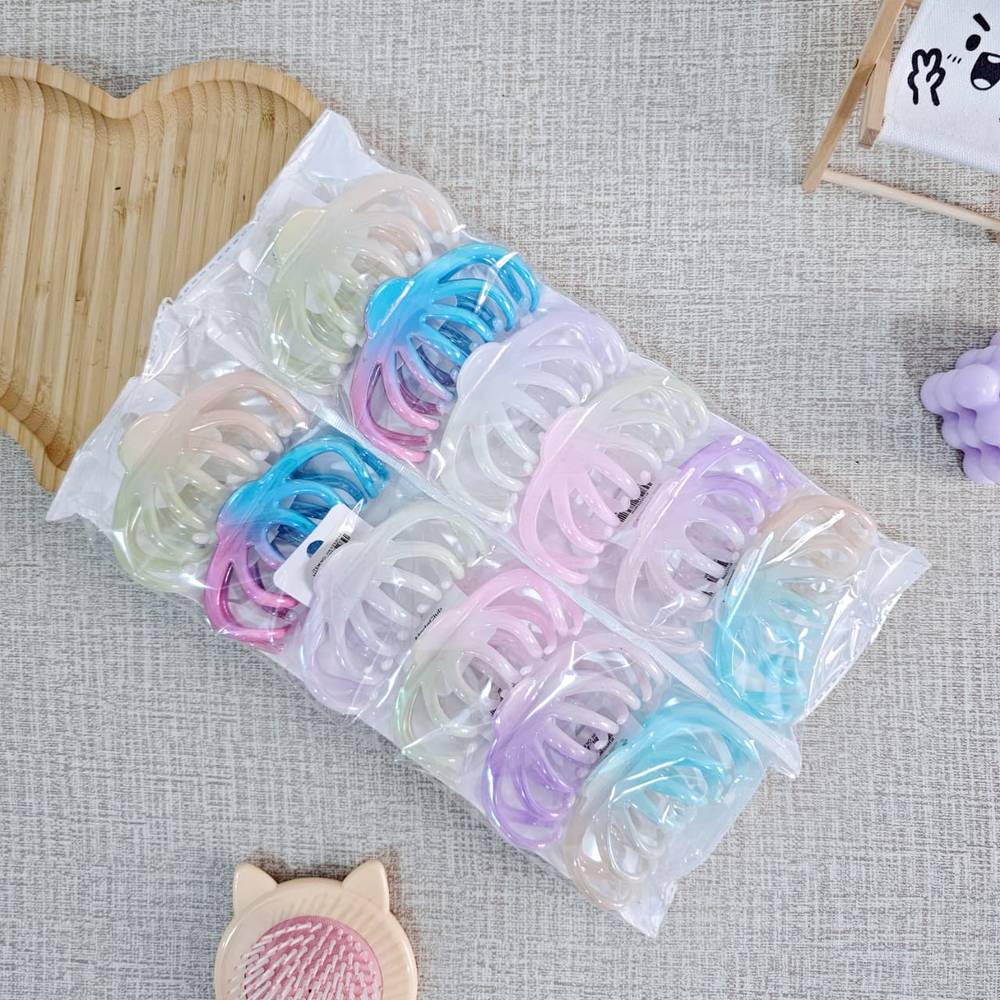 (Broches para el cabello. Están disponibles por pack de 12U. en varios colores tornasolados, incluyendo naranja, rosa, violeta, celeste, etc. Son un accesorio de moda popular para el cabello).