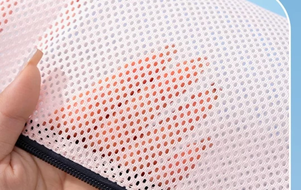 (Portacosmetico tipo bolsa de malla transparente con cierre, permite ver fácilmente el contenido. Ideal para organizar y transportar cosméticos, artículos de tocador o pequeños objetos digitales. Su diseño compacto y ligero las hace perfectas para viajes o para el uso diario dentro de un bolso o mochila).
