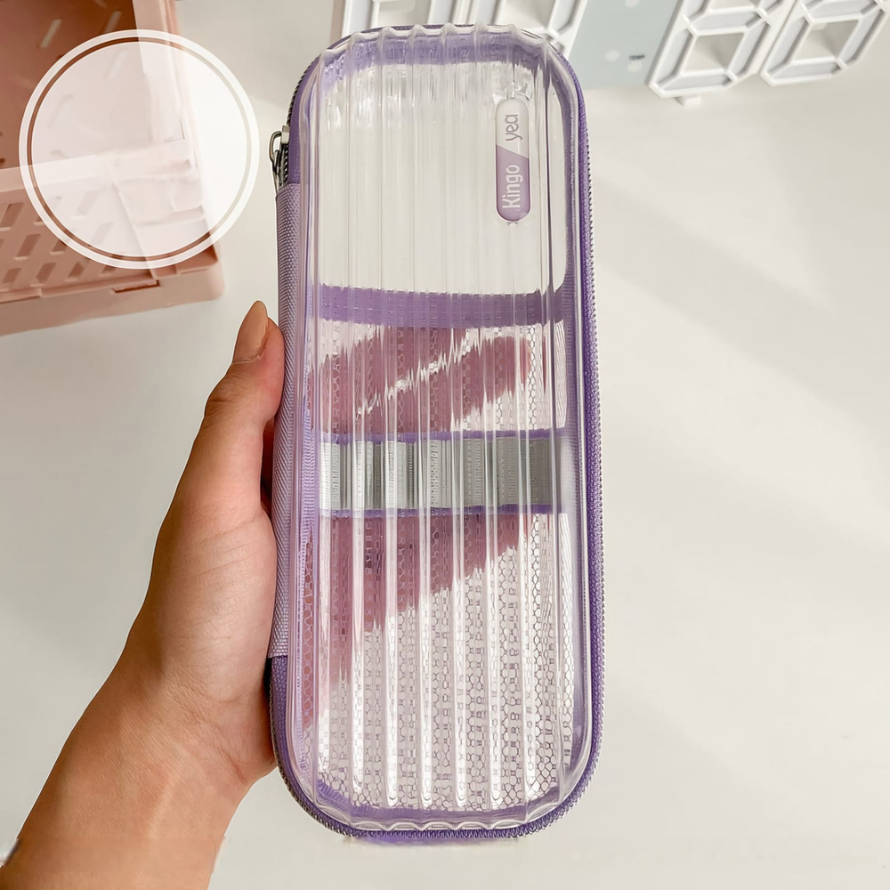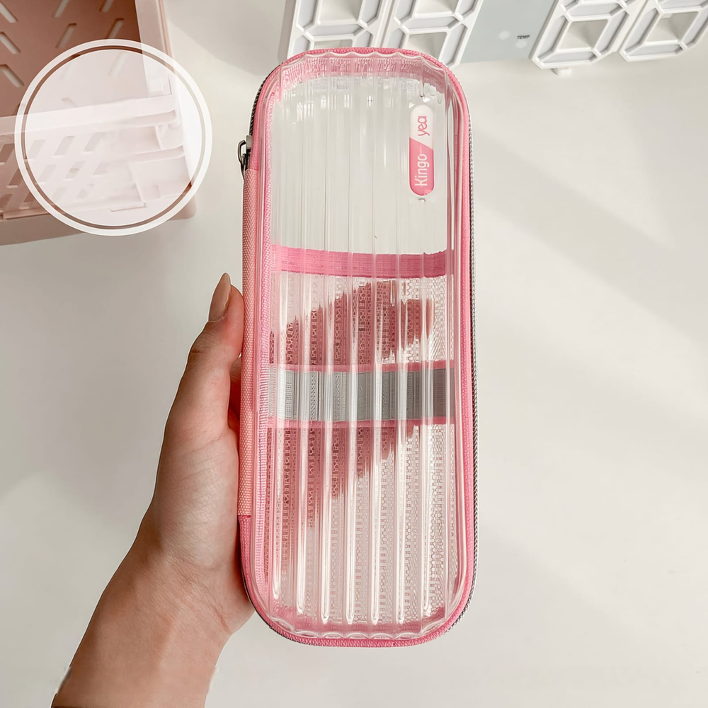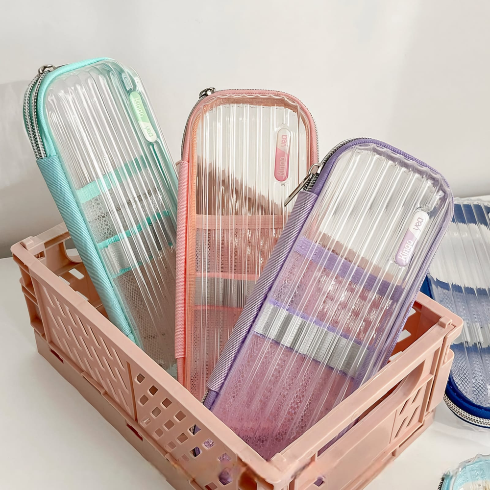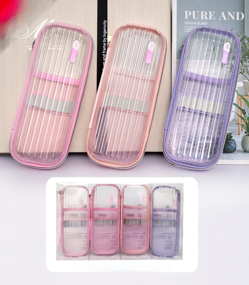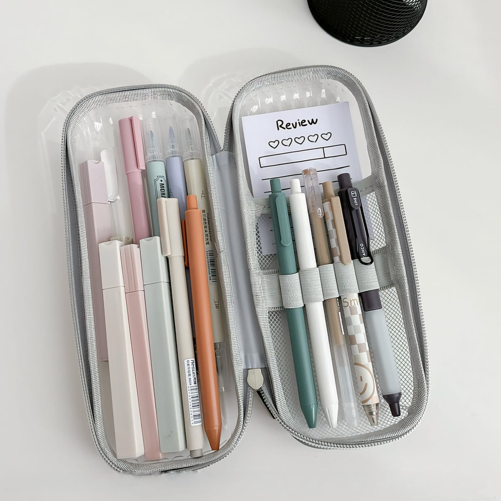 (Cartuchera ideal para guardar y organizar lapiceras, lápices, gomas de borrar, sacapuntas, tijeras, pegamento y otros pequeños accesorios. Vienen en 3 colores: negro, azul y gris. Cuentan con un bolsillo red y un separador para colocar útiles).