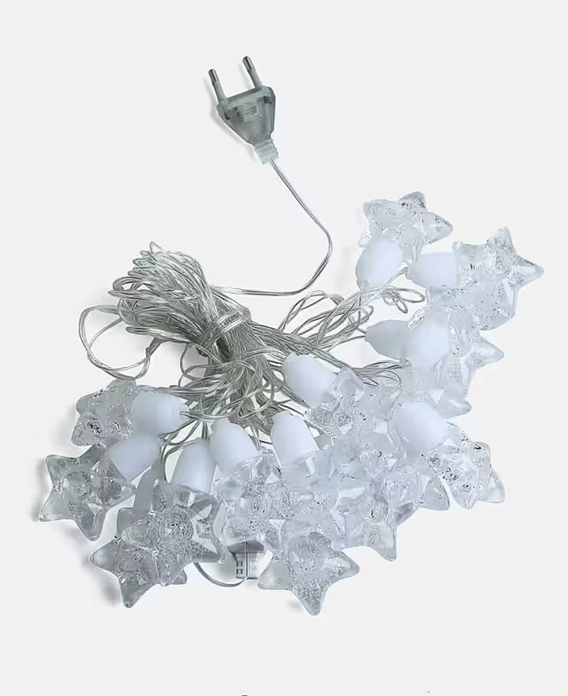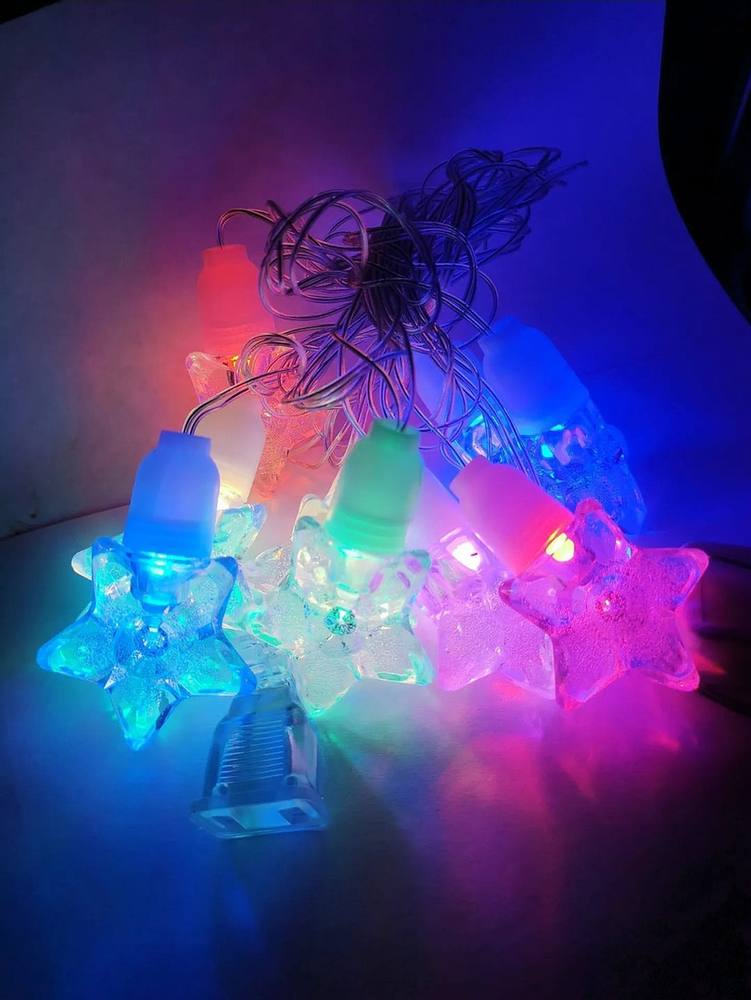 (Luz guirnalda tipo enchufe. Cuenta con 10 luces multicolor con diseño estrellas. Y cuentan con 2 cabezales un cable de enchufe y otra de extención. Ideal para decorar tu hogar, oficina, comercio, etc).
