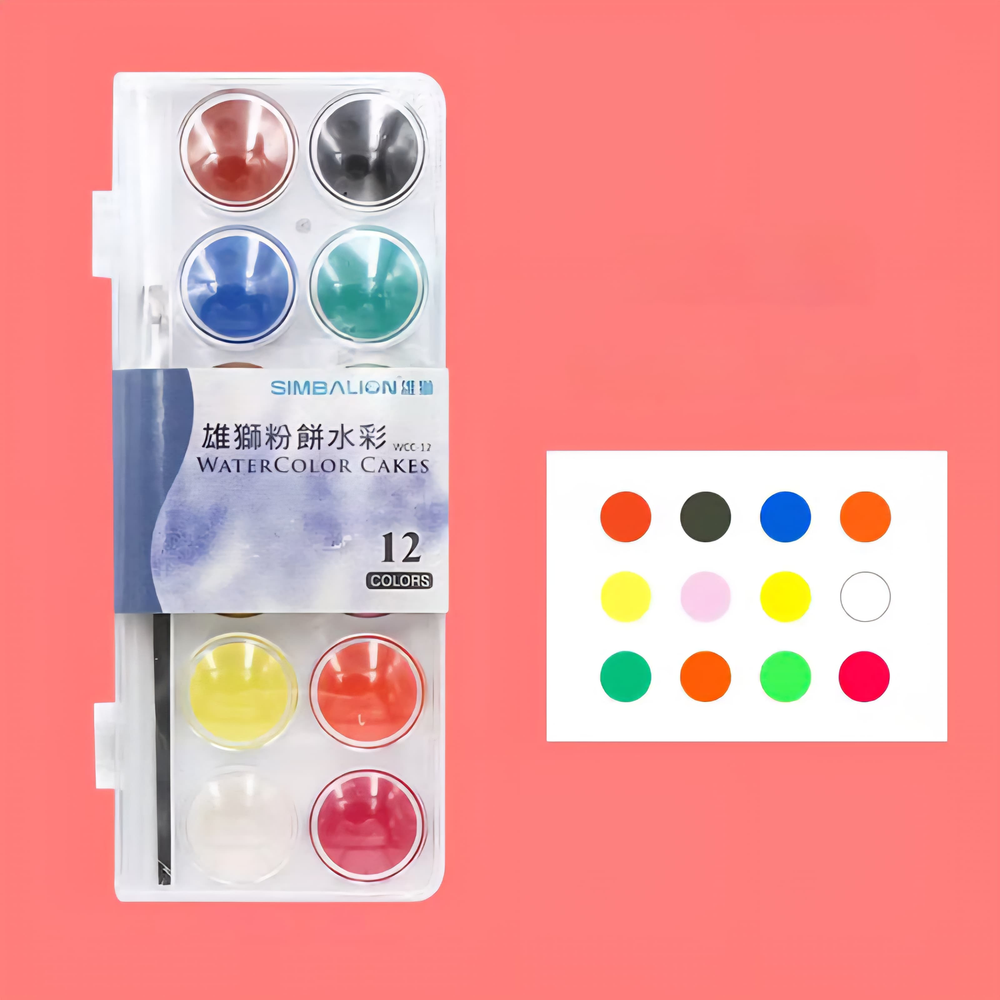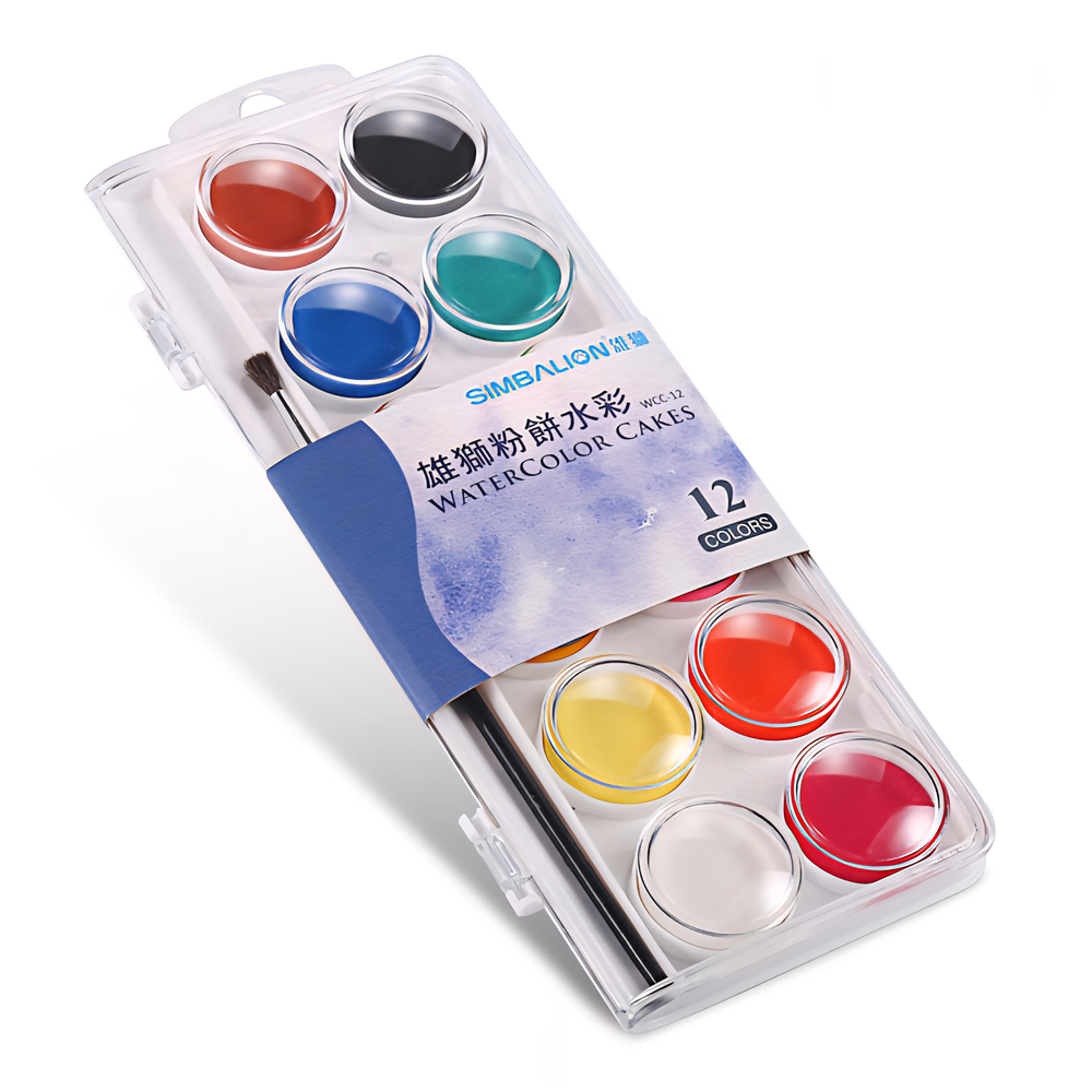 (Paleta con 12 acuarelas en distintos colores. Trae consigo un pincel.)