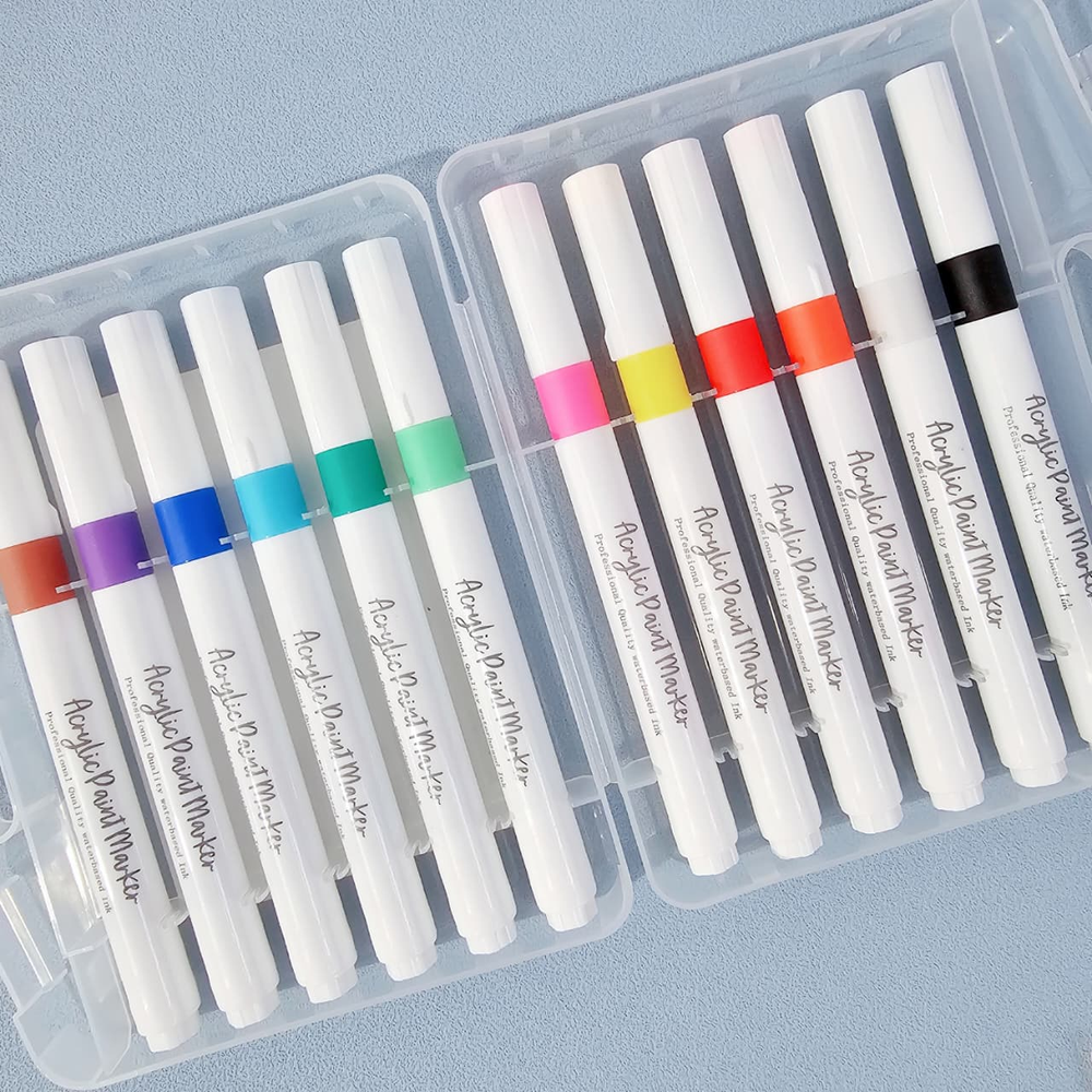 (Set x 12U. tinta acrílica ideal para pintar en vidrio, pared o superficie oscuras como cartulina, etc. Punta tipo pincel ideal para pintar o hacer lettering).
