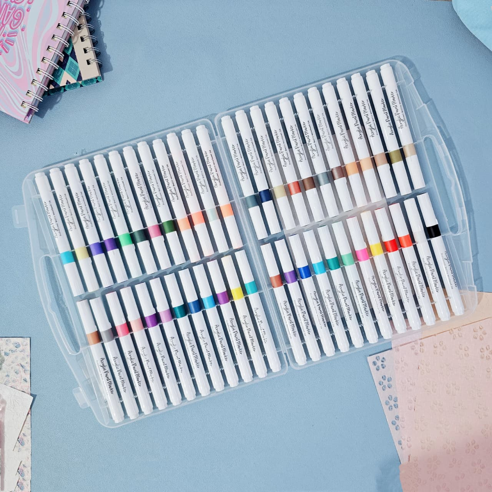 (Set x 48U. tinta acrílica ideal para pintar en vidrio, pared o superficie oscuras como cartulina, etc. Punta tipo pincel ideal para pintar o hacer lettering).