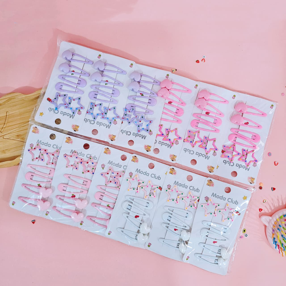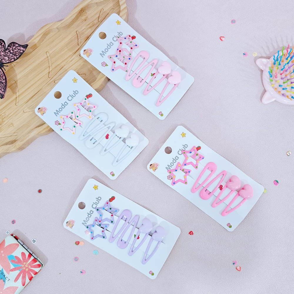 (Hebillas en distintos colores con diseño de estrella y corazón. Ideal para lucir tu peinado).
