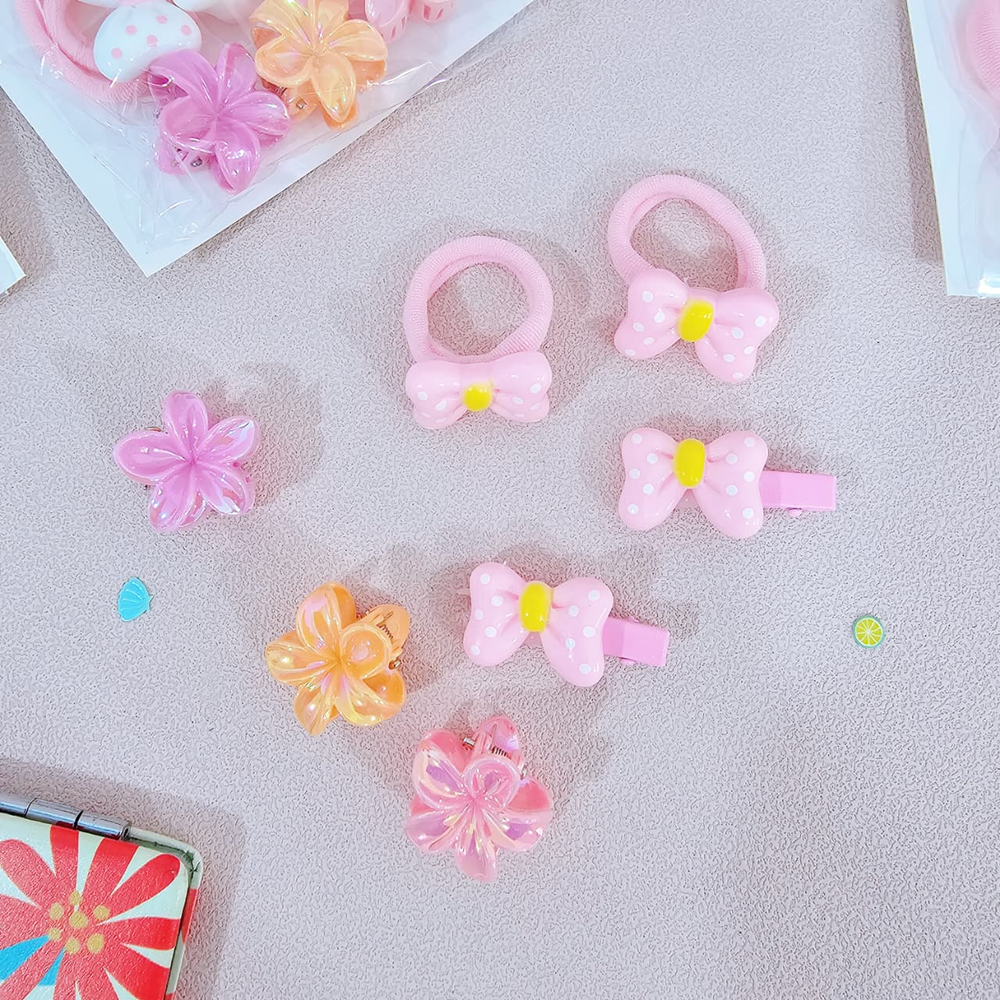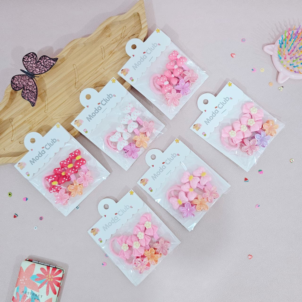 (Hebillas Mini + colitas con un tierno diseño de moños y flores, disponible en colores surtido. Ideal para lucir tu peinado).