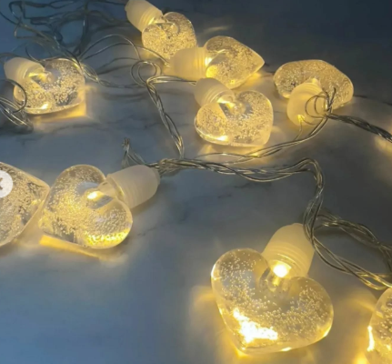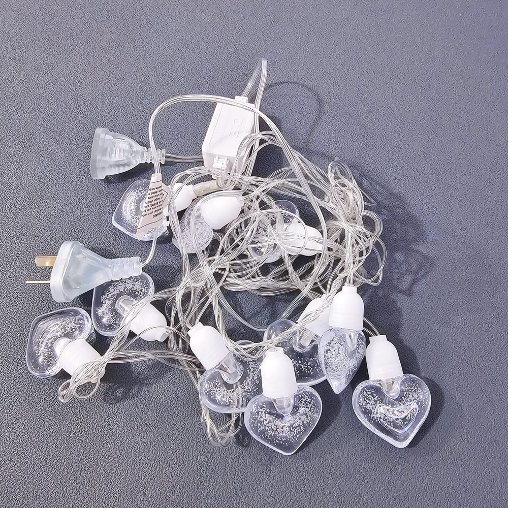 (Luz guirnalda tipo enchufe, cuenta con 10 luces de corazón en tono cálidos. Y cuentan con 2 cabezales un cable de enchufe y otra de extención. Ideal para decorar tu hogar, oficina, comercio, etc). (ut26)