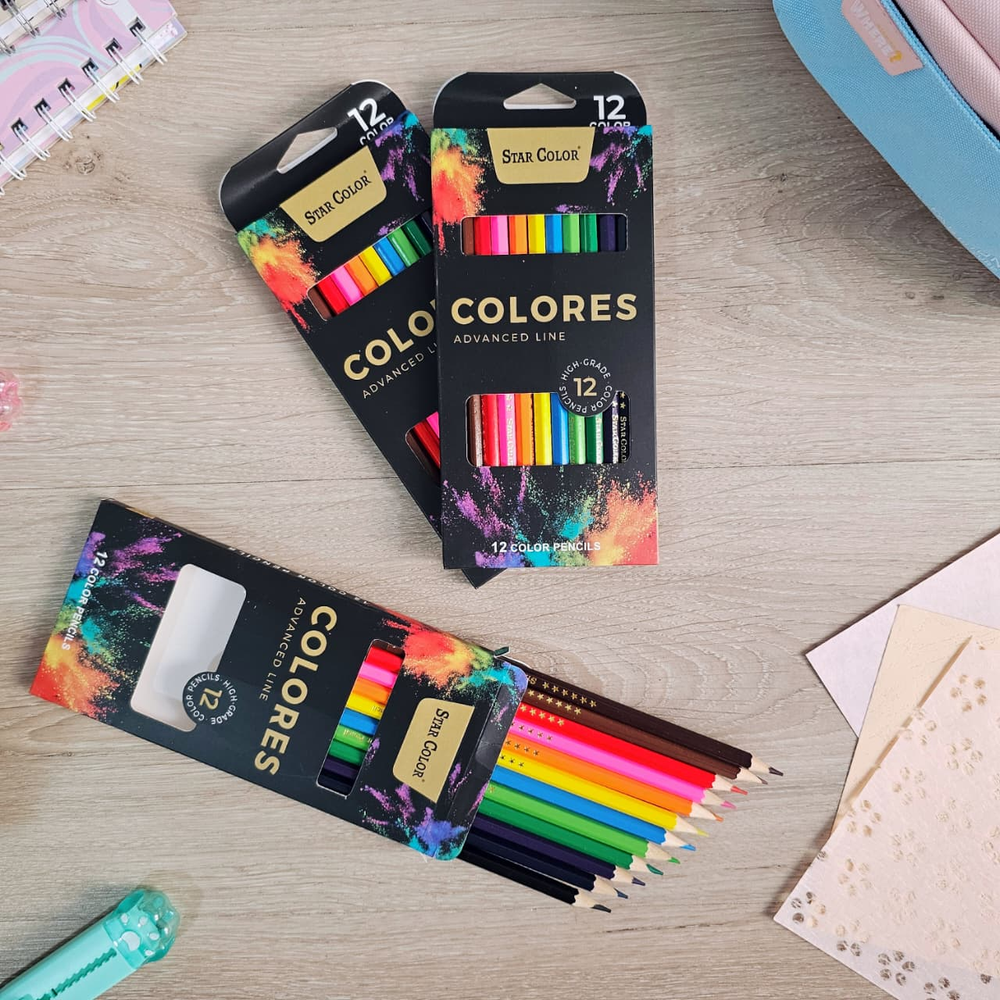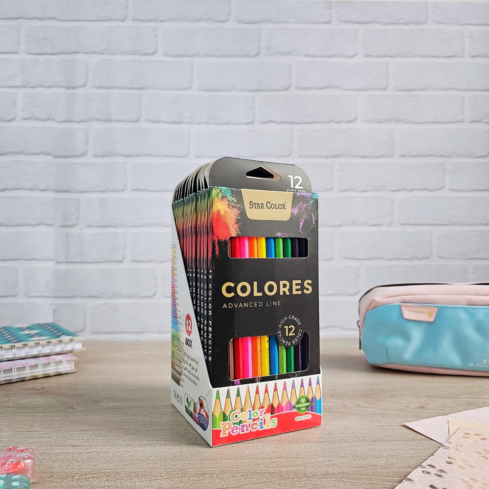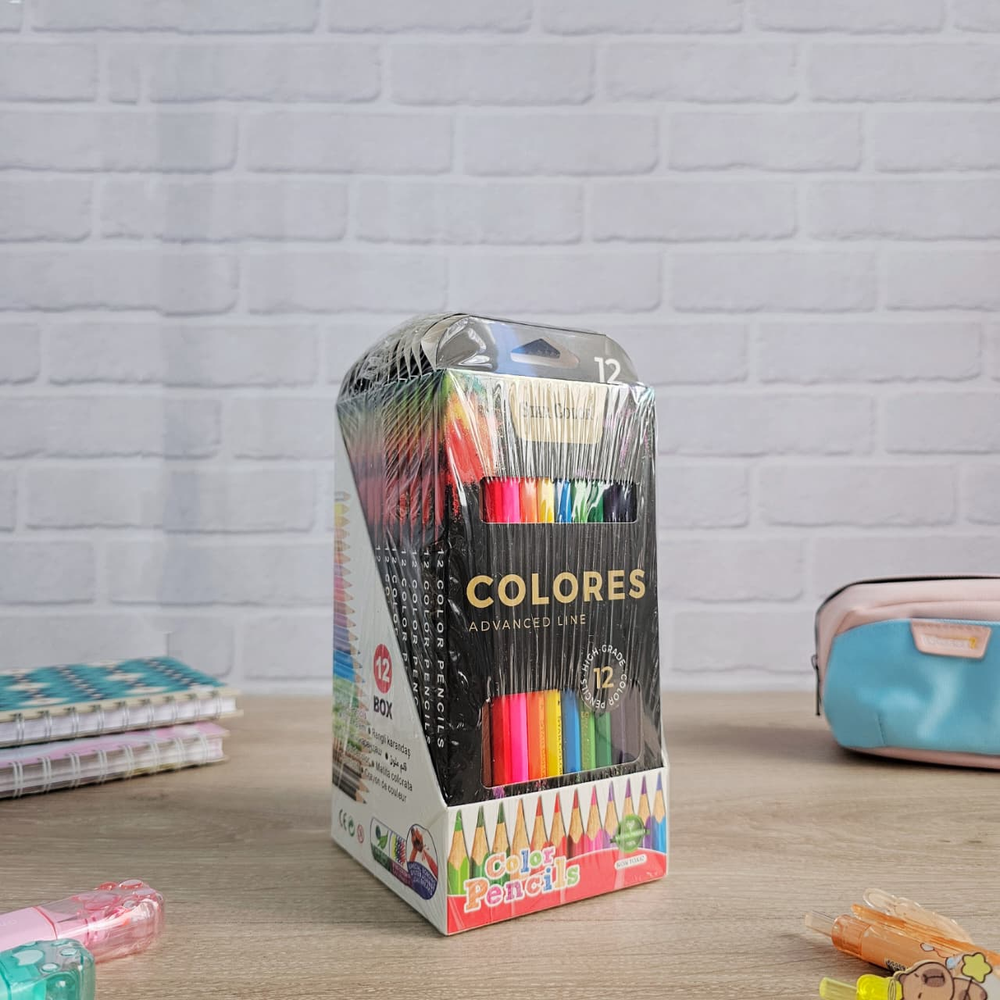 (Caja con 12 unidades de lápices colores surtidos, mina resistente y suave. Ideal para darle color a tus dibujos).