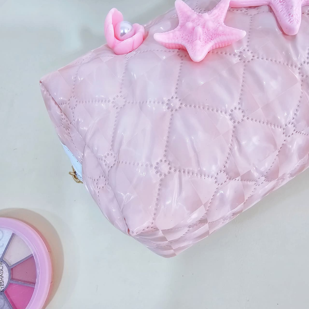 (Neceser que permite guardar y organizar de manera eficiente productos de maquillaje, como labiales, brochas, paletas de sombras, cremas y otros artículos personales. Facilita el transporte de cosméticos de forma segura, evitando pérdidas o daños durante viajes o traslados. Mantiene los productos de belleza ordenados y fácilmente accesibles, lo que agiliza la rutina de maquillaje Son multifuncionales y pueden usarse también para guardar joyas, accesorios electrónicos o artículos de tocador. Disponible en 4 colores: violeta, celeste, rosa y crema). (Ut28)