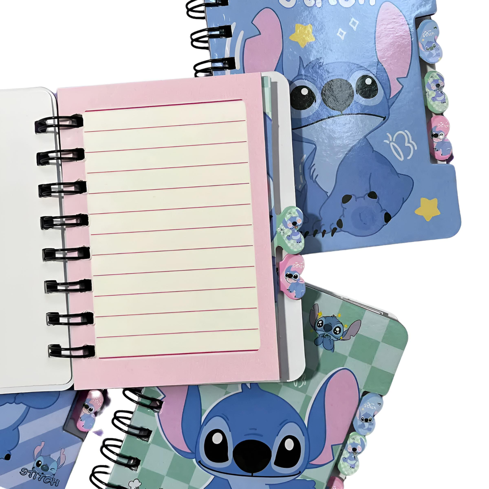 (Esta mini libreta anillada cuenta con 3 diseño de "Stitch" super tierno. Ideal para regalar, sus hojas son rayadas y vienen con señaladores).