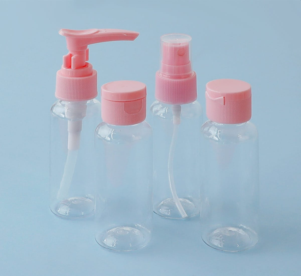 (Set x 4U. Neceser de viaje, que cuenta con 1 dispensador, un rociador y dos envases , ideal para poder sacar el producto fácilmente presionándolo. Son super útiles a la hora de llevarlos de viaje, ya que por su tamaño no ocupan espacio). Ut29.