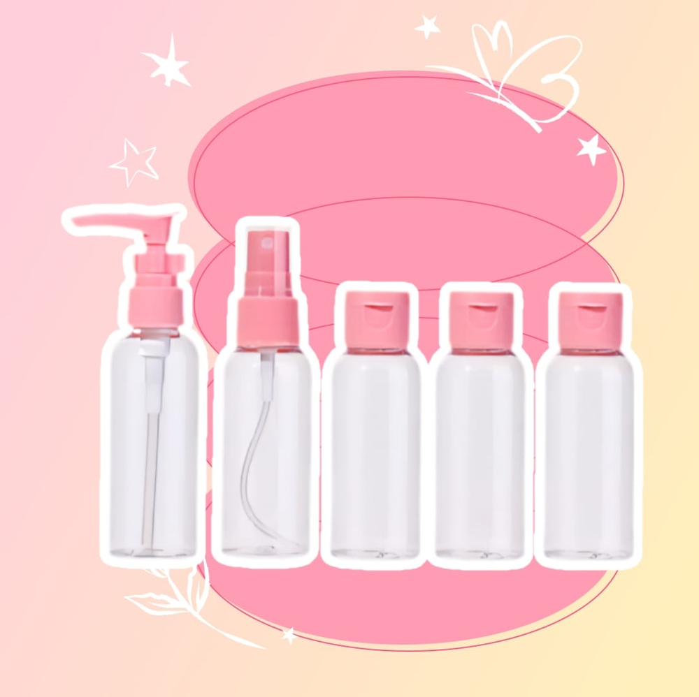 (Set x 5U. Neceser de viaje, que cuenta con 5 envases de color transparente que son un material de plástico, ideal para poder sacar el producto fácilmente presionándolo. Son super útiles a la hora de llevarlos de viaje, ya que por su tamaño no ocupan espacio). Ut29.