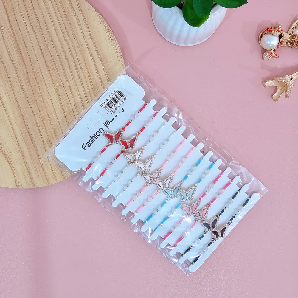 (Blíster con 12 unidades de pulseras, en colores varios. Diseño delicado con correas ajustables.) Ut29
