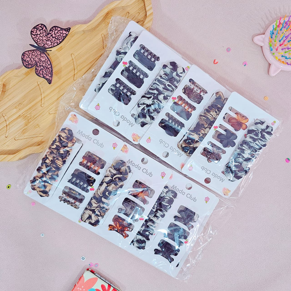 (Pack x 12 Blíster. Cada blíster cuenta con 3 broches en distintas formas y 2 colitas para el pelo . Ideal para realizar peinados).