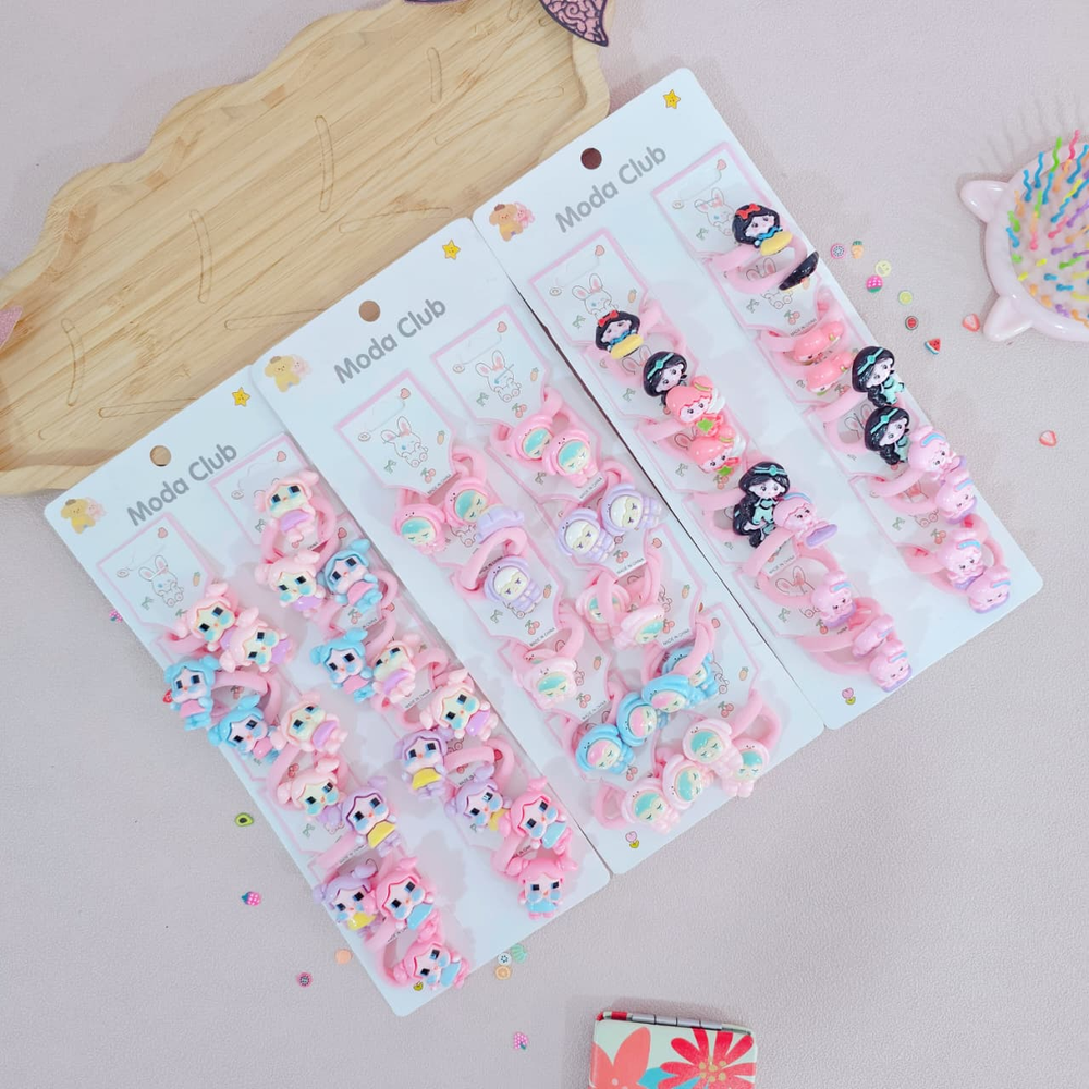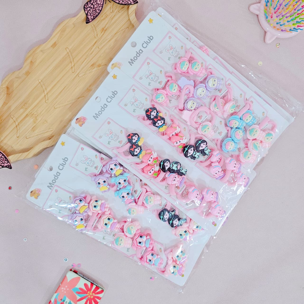 (Pack x 12 Blíster. Cada blíster cuenta con 10 pares de colitas con personajes "cry baby" y princesas. Ideal para realizar peinados).