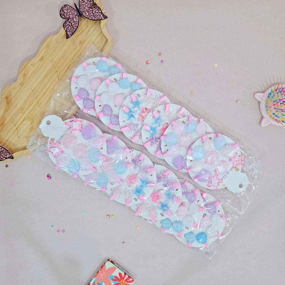 (Pack x 12 Blister. Cada blíster cuenta con 10 hebillas en distintas formas y diseños inspirados en el mar . Ideal para realizar peinados).